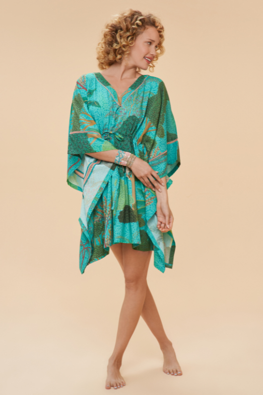 Embrace the summer vibes with the Powder Beach Cover Up! Featuring a drawstring waist for a flattering fit and a bright, fun print that will make you stand out on the beach. It's the perfect addition to your beach wardrobe, easily thrown over a bikini or styled for a holiday adventure. Get ready to turn heads and soak up the sun in style.