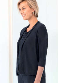 The Bianca Nika Overshirt is a stylish and versatile piece for women. Its open design and 3/4 length sleeves provide both comfort and coverage. Perfect for layering or as a cover up, this overshirt is a must-have in any wardrobe.