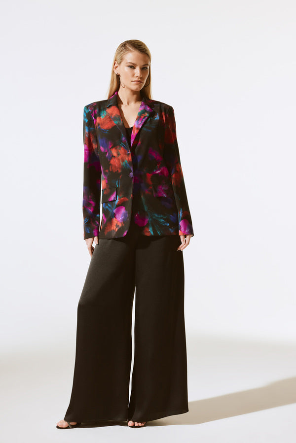 Introducing the exquisite Joseph Ribkoff Floral Blazer, made from a luxurious silky knit fabric. Its classic notched collar and long sleeves exude sophistication, while the faux pockets add a touch of elegance. Fully lined for ultimate comfort, this is a must-have for any fashion-forward individual. Elevate your wardrobe with this premium piece.