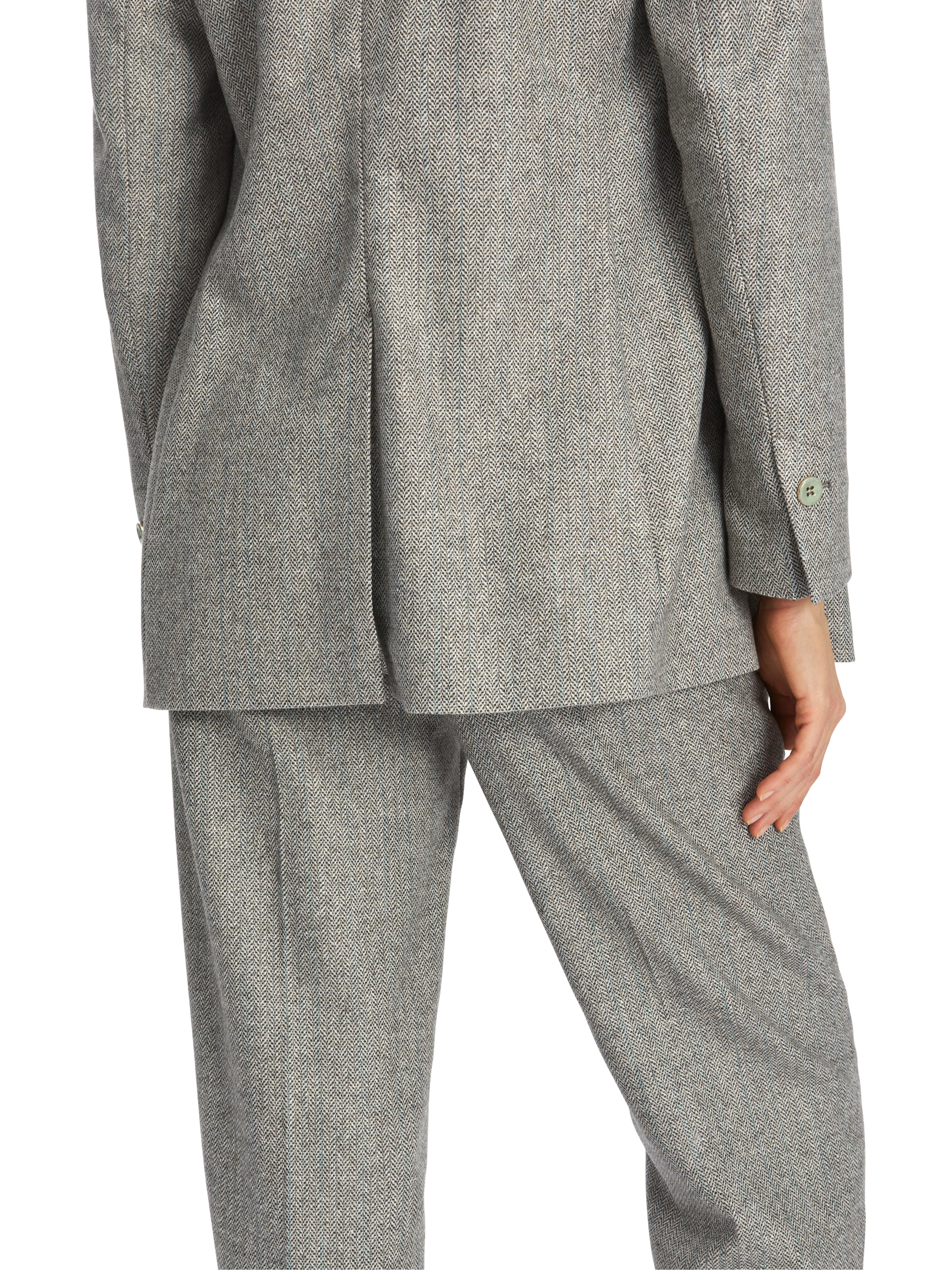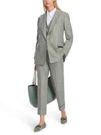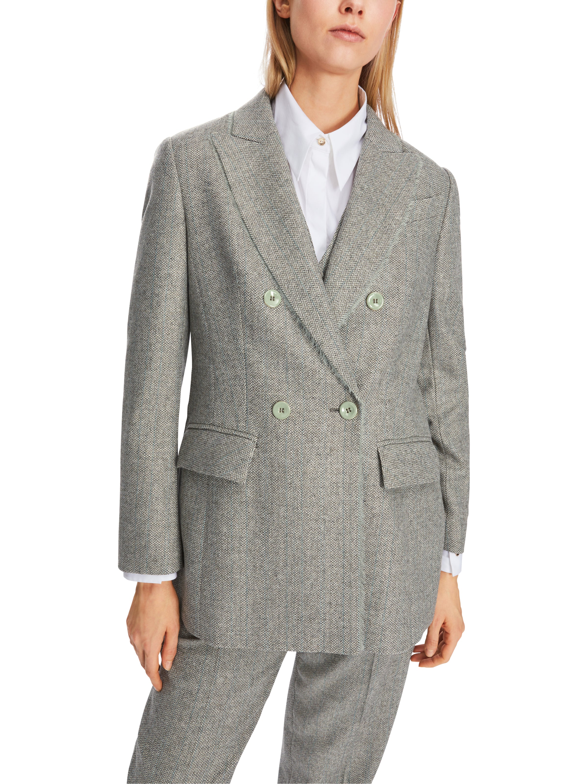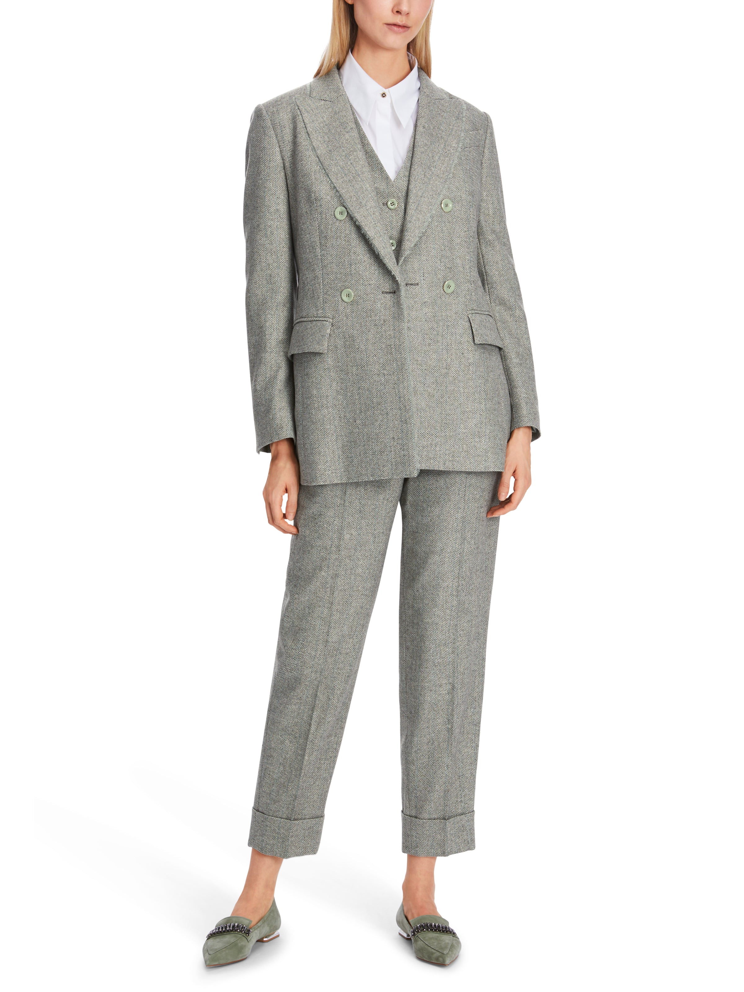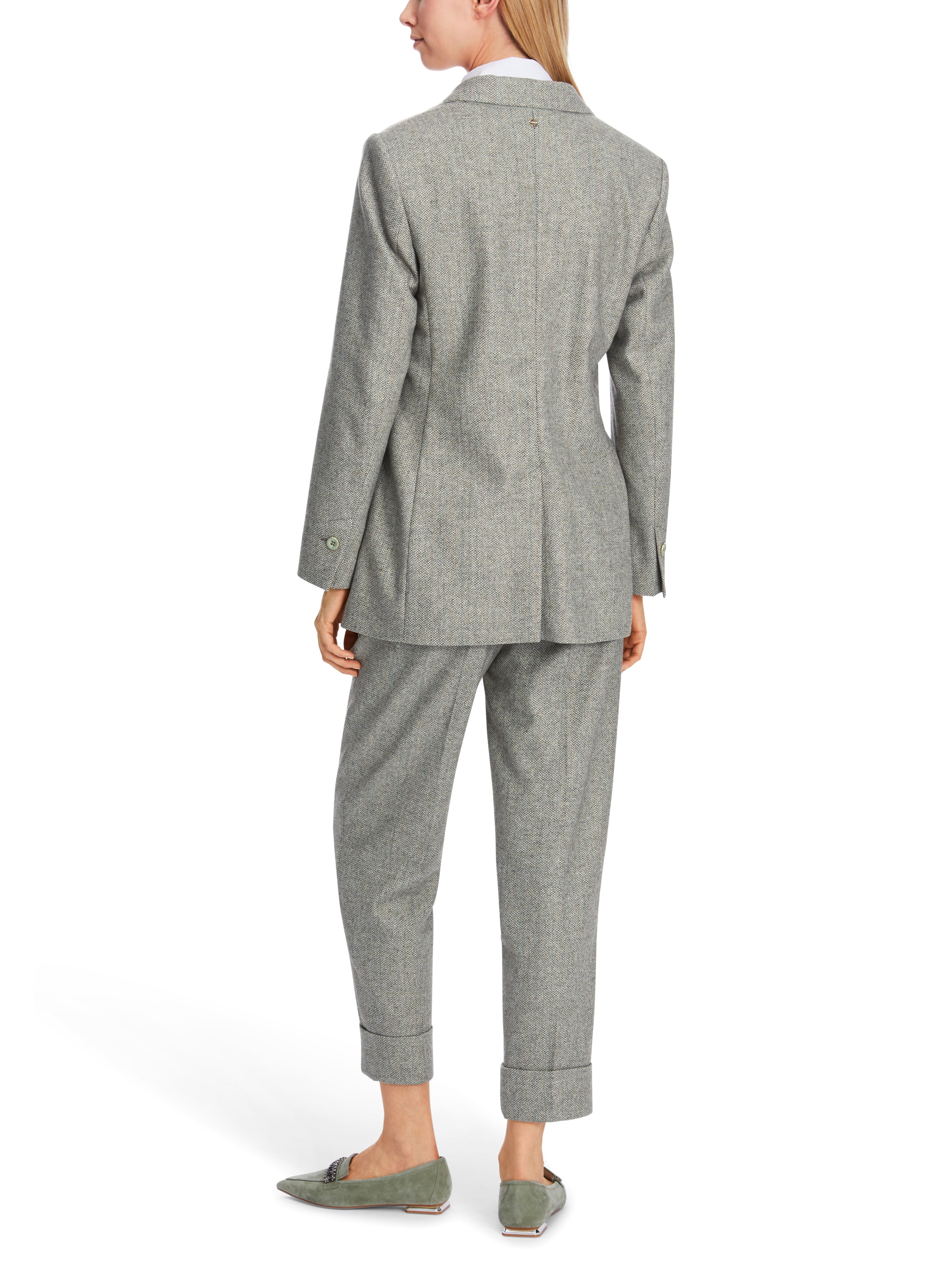 Elevate your professional wardrobe with the Marc Cain Blazer. This stylish piece boasts long sleeves, pocket flaps, and a sleek button fastening. Complete with a lapel collar, this blazer is perfect for both work and special occasions, it effortlessly combines sophistication and versatility. Upgrade your look and make a statement with this stylish blazer.