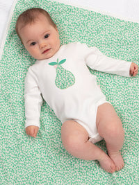 Get ready to go pear-picking with our Pear-fect bodysuit! This cream-colored one-piece features a playful pear print that's perfect for your little one. It's fun, functional, and oh-so-cute for your baby to wear. Perfect for any occasion. (Don't worry, no real pears were harmed in the making of this product!) 🍐👶