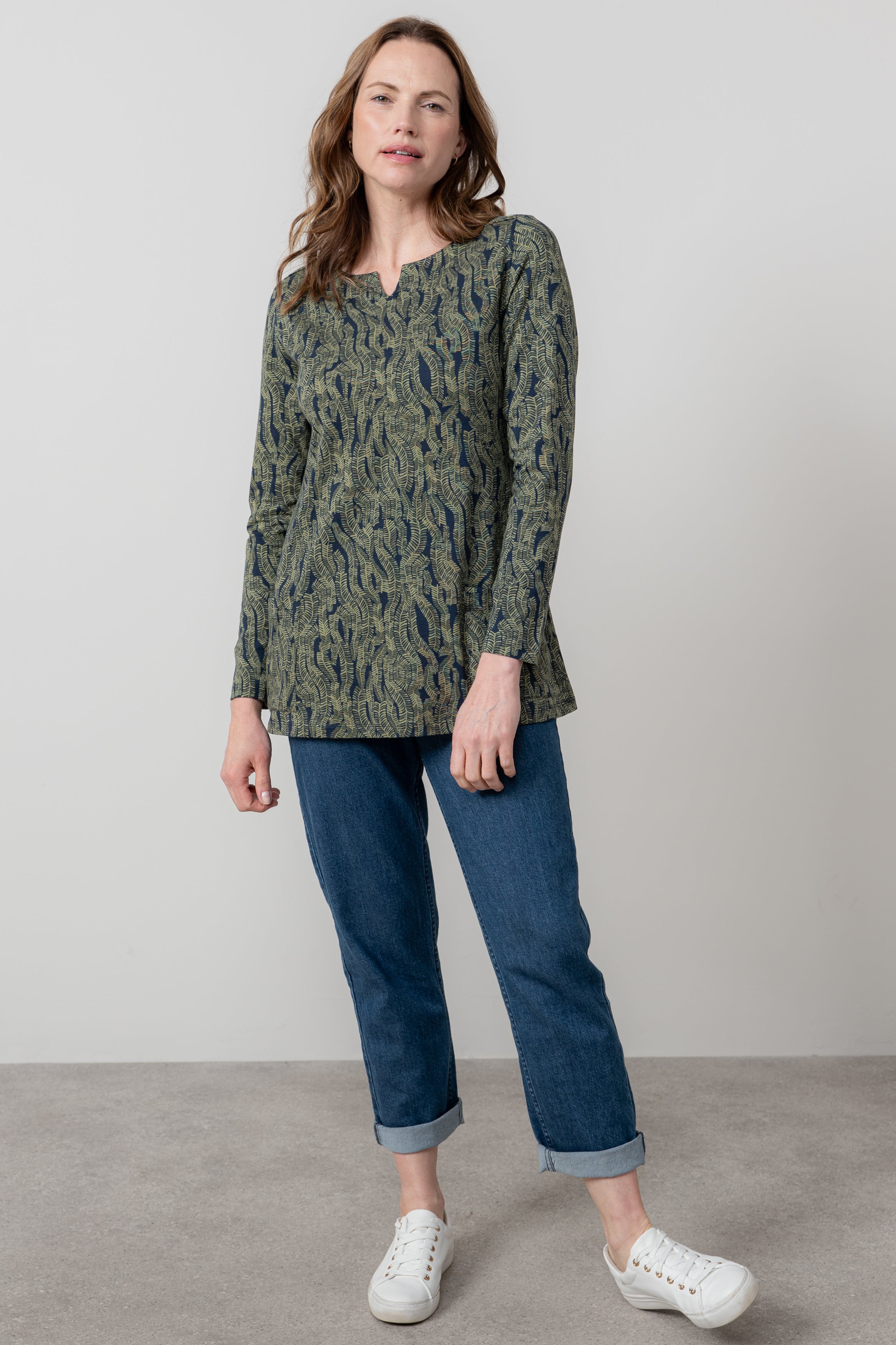 Experience comfort and style with the Lily & Me Maple Tunic, crafted from soft stretch cotton jersey. Its full-length sleeves and notch neckline offer a flattering fit, while the curved hem adds a graceful finish. Featuring a timeless design, this tunic effortlessly complements any wardrobe, perfect for both casual and refined looks.