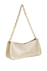 The Every Other Chain Detail Baguette Bag features a practical chain shoulder strap, adjustable and detachable for versatile styling. Crafted from faux leather, it boasts a secure zip closure and elegant gold hardware. Elevate your everyday look with a touch of sophistication.