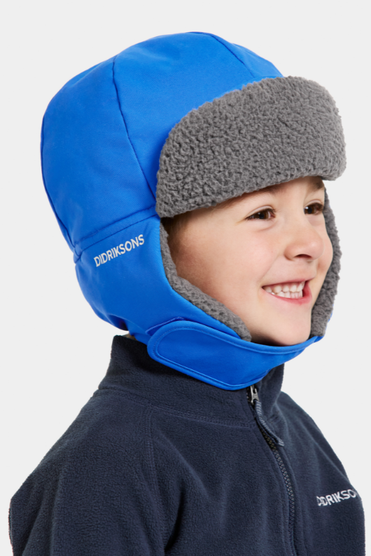 Introducing the Didriksons Biggles Cap, perfect for kids on any winter adventure! With an adjustable chin strap and ear flaps, this hat stays in place and keeps little ears warm. Reflective details provide added safety while the fleecy lining adds extra cosiness.