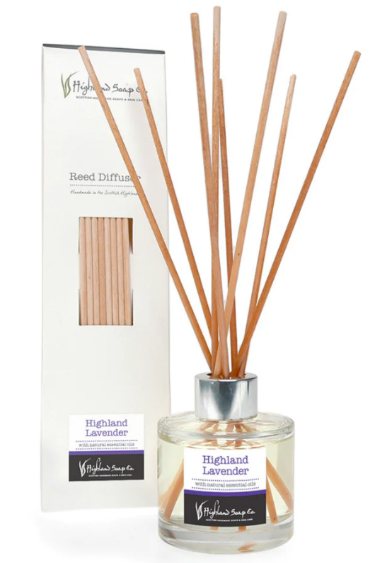 Highland soaps reed diffusers are made from sustainable environmentally friendly carrier oils and their signature oils. Sustainably sourced reeds are used to soak up the oils and create a lovely smell throughout your home.