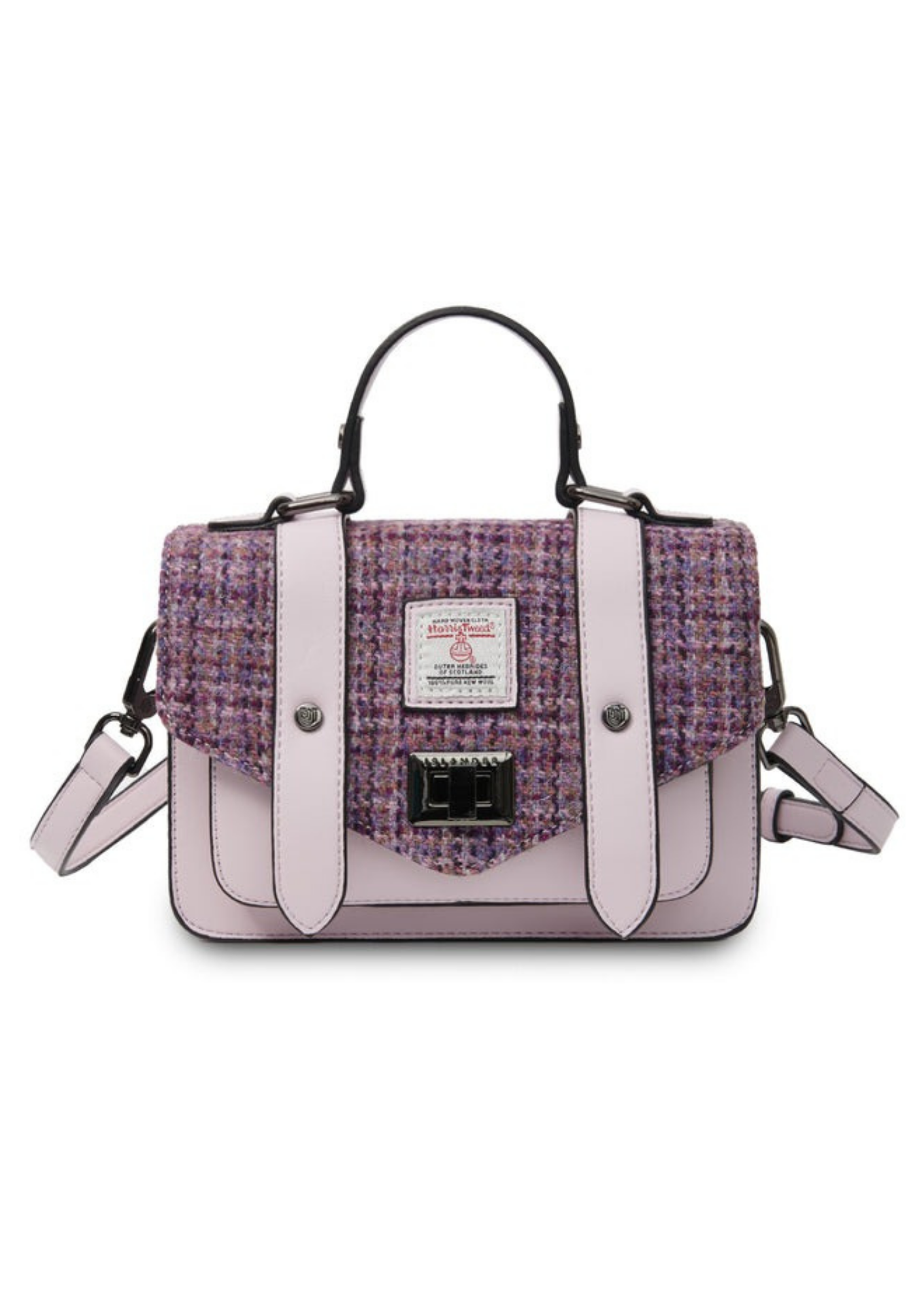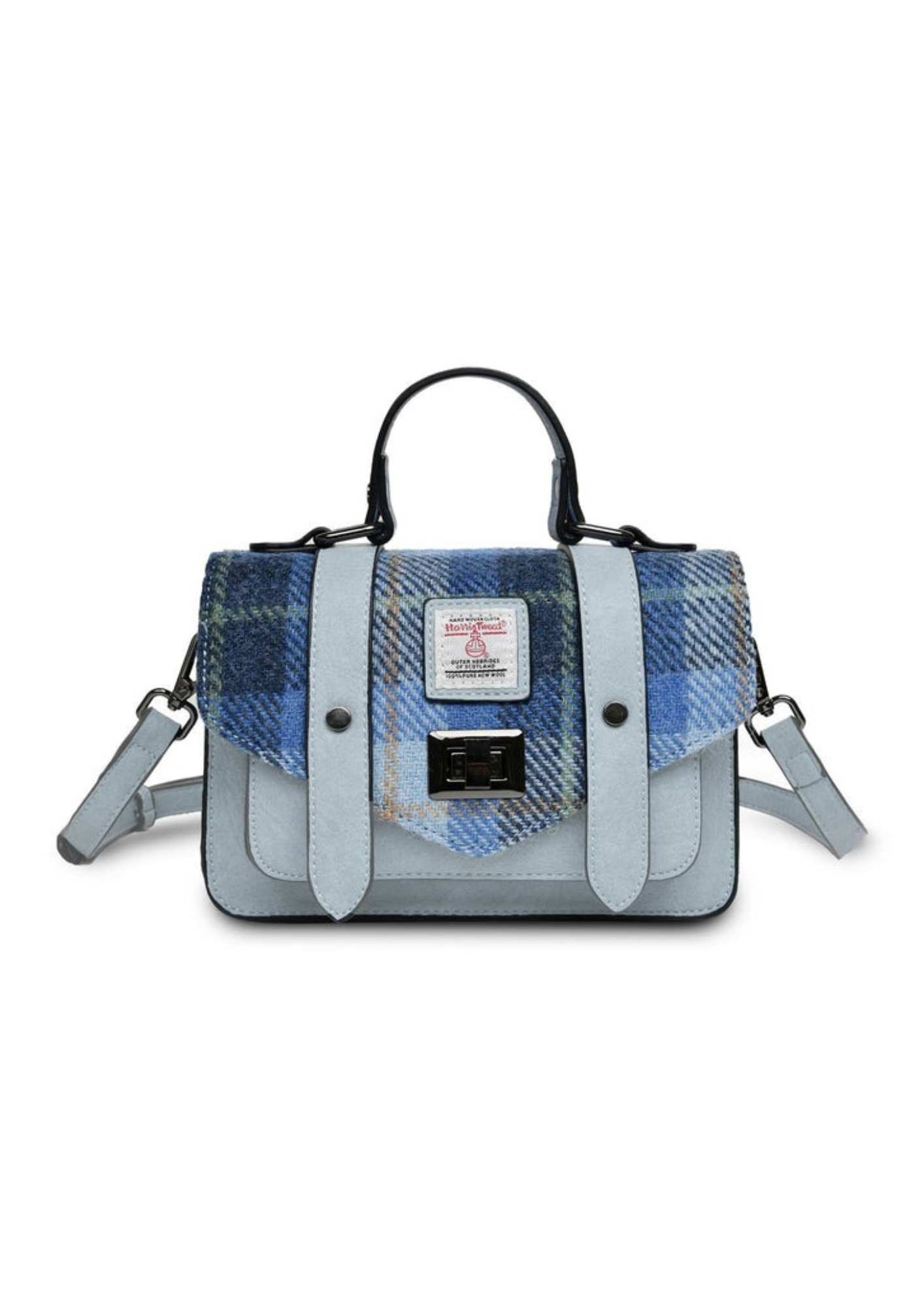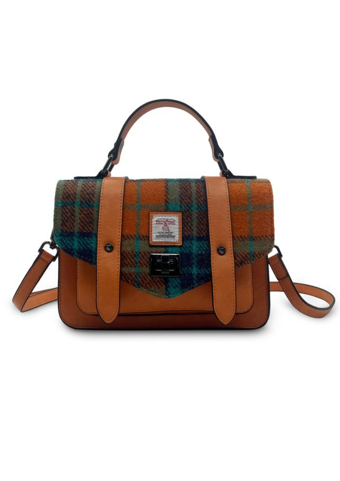 Elevate your look with the enduring charm of The Islander Mini Satchel. This petite package effortlessly infuses timeless sophistication into any ensemble. Made with a blend of microfibre leather and Harris Tweed cloth, it features a metal twist fastening and an adjustable shoulder strap for both style and practicality.