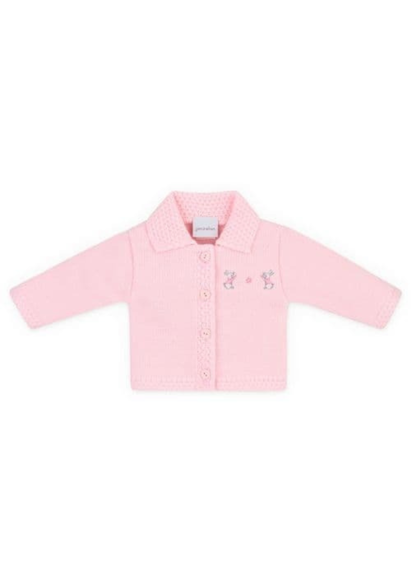 The adorable Dandelion Bunny Collared Cardigan features charming bunny and flower embroidery, adding a touch of whimsy to your little one’s outfit. Crafted in Portugal for Dandelion, it boasts a fancy knitted collar and four buttons fastening all the way up to the neck, keeping your baby cosy and stylish. Perfect for playful days and cuddly moments!