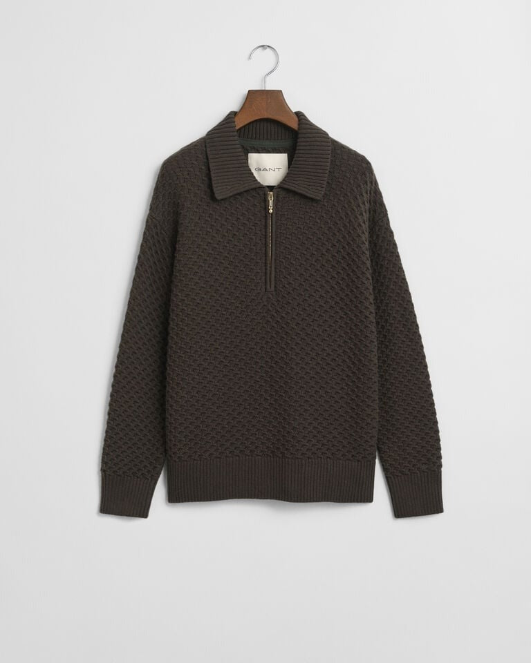 Stay comfortable and stylish during transitional seasons with the Gant Cotton Texture Half Zip. Made from a soft cotton blend, this sweater offers a relaxed fit that’s perfect for layering. Featuring a half-zip collar for adjustable coverage, rib detailing at the hem and cuffs, and a subtle logo embroidered on the sleeve, it effortlessly blends classic design with everyday comfort. Ideal for adding warmth without bulk, this textured knit piece is a versatile addition to your wardrobe.