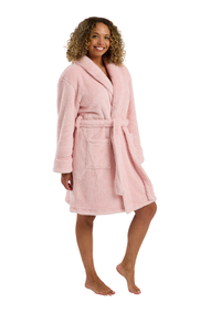 Experience comfort and style with the Marsylka Plush Fleece Wrap Gown. This knee-length dressing gown features a flattering V-neck and a tie waist to enhance your silhouette. Convenient pockets add practicality, making it perfect for lounging at home. Soft fleece fabric ensures warmth and cosiness throughout the day.