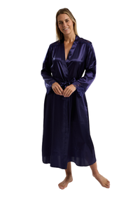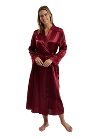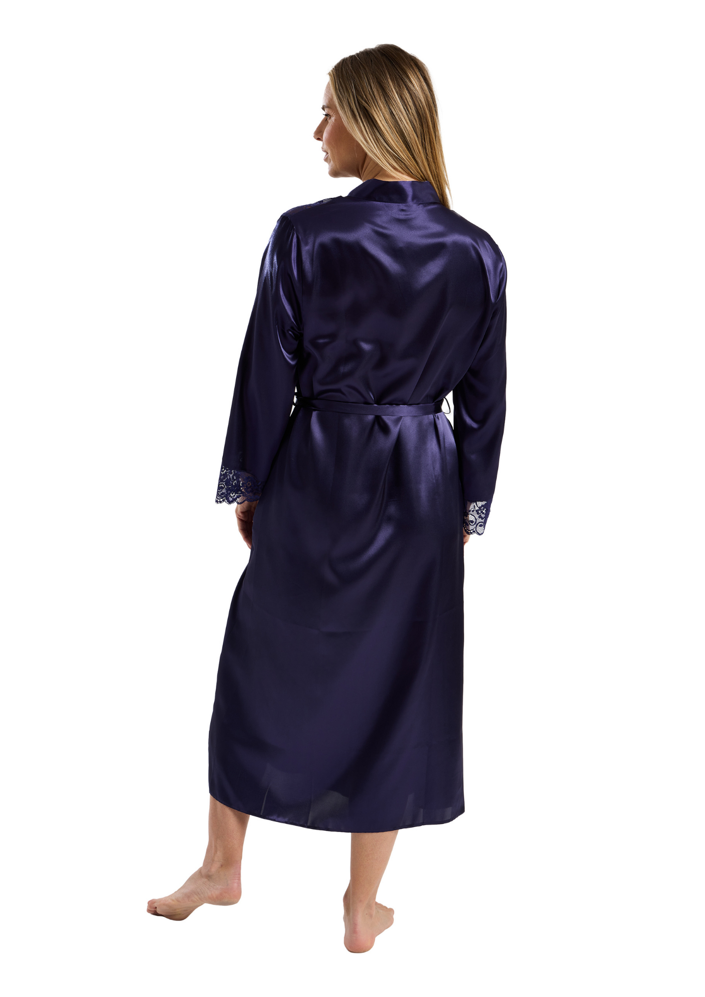 Elevate your lounging look with the Marsylka Claudette Satin Long Wrap gown. Crafted from smooth satin, it features long sleeves with delicate lace detailing that adds a touch of elegance. The tie waist creates a flattering silhouette, ensuring both comfort and style.