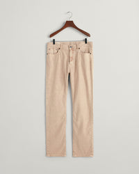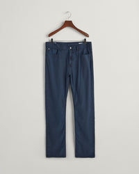 Elevate your style with the Gant Cotton/Linen Regular Fit Jeans. Designed for a perfect fit, the mid-rise and branded buttons add a touch of sophistication. The zip closure ensures comfort while adding a modern twist. Upgrade your wardrobe with these versatile jeans!