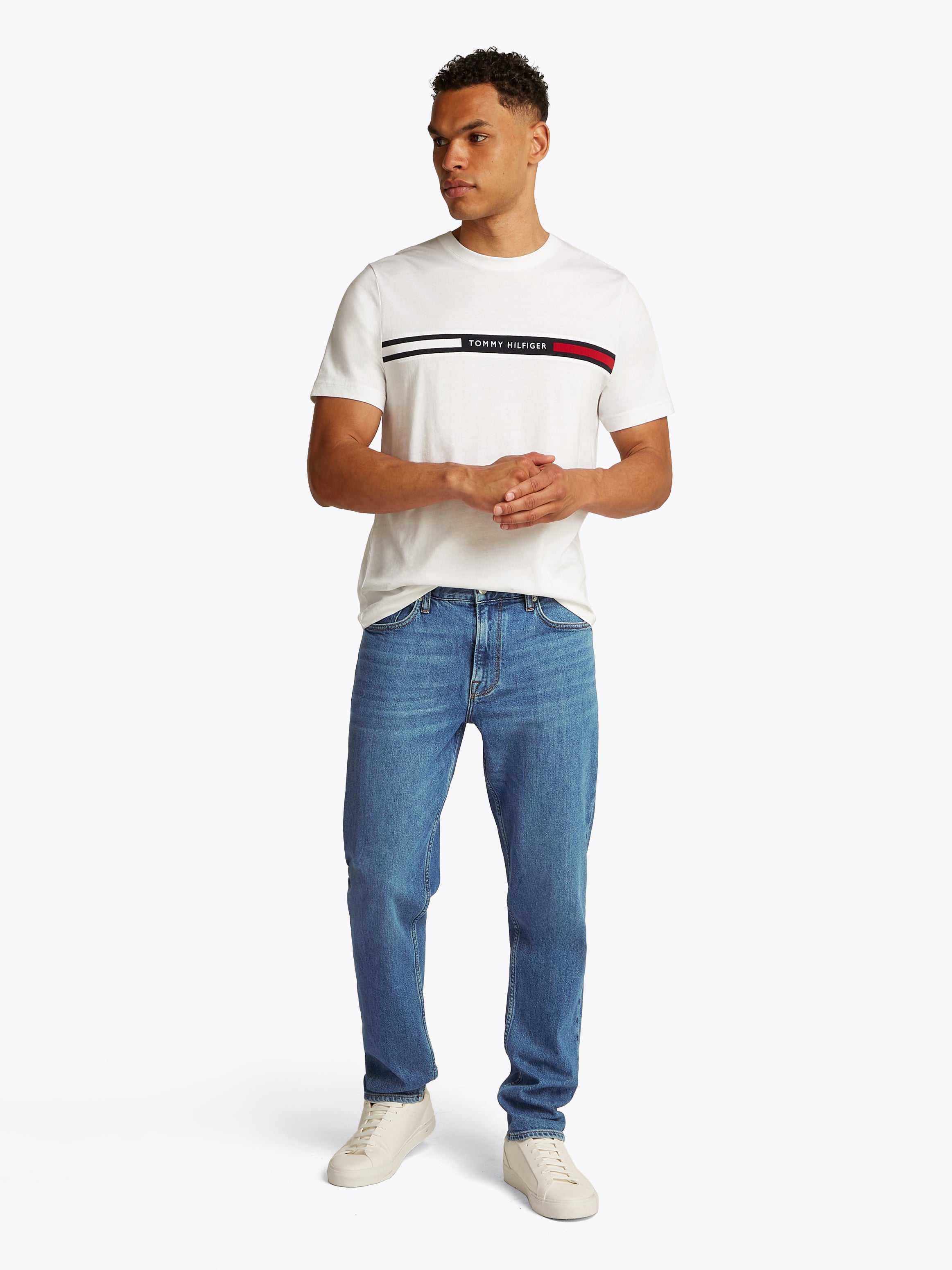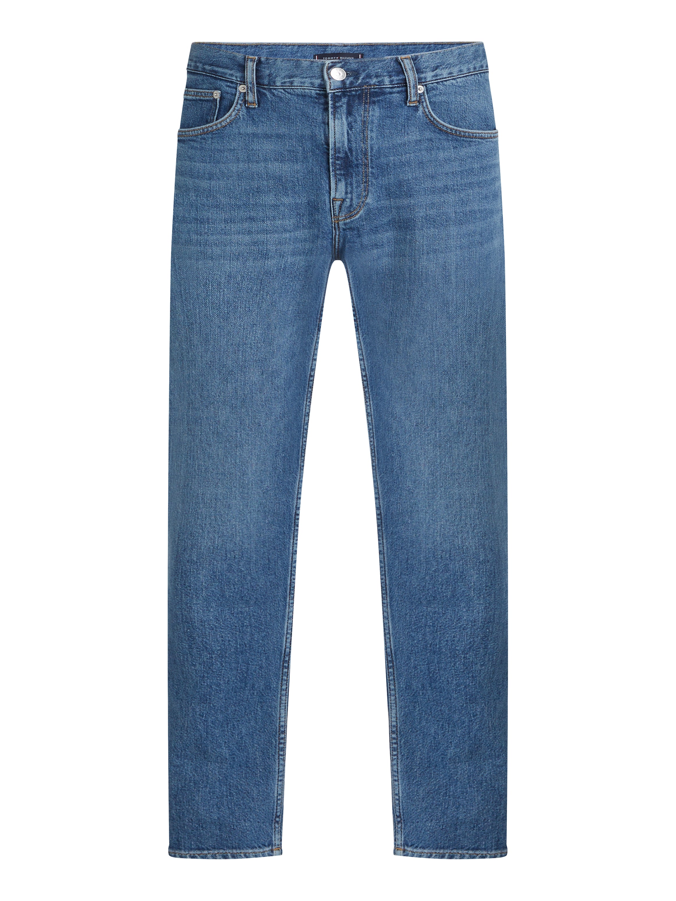 Look sharp and stylish in the Tommy Hilfiger Tapered Harlem Jeans. These men's jeans feature a sleek tapered leg style with a zip and button fastening, belt loops, and pockets. Elevate your wardrobe with these versatile and comfortable jeans perfect for any occasion.