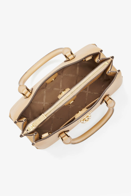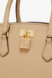 Elevate your style with the Michael Kors Ruby Satchel Handbag. With two main compartments, a zipped compartment, and multiple pockets, this bag offers ample space for all your essentials. The magnetic closure and leather carry handles ensure easy access and comfortable carry. Plus, the detachable crossbody strap allows for versatile wear. And of course, it's complete with iconic Michael Kors branding for a touch of luxury.