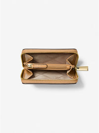 This Small ZA Coin Card Case from Michael Kors is an elegant and sophisticated way to store your essentials. Crafted with a compact design, it can easily fit in purses or pockets while still providing ample space for cards and coins. It comes in two distinctive colours, Pale Peanut and Camila rose, to suit all of your needs.
