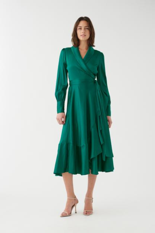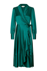 The Dea Kudibal Vitahdea Wrap Dress is a must-have for any wardrobe. This dress features a flounce around the hem and front, adding a playful touch to its soft silk material. With the ability to pull in at the waist with the tie, it's both feminine and versatile.