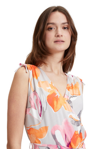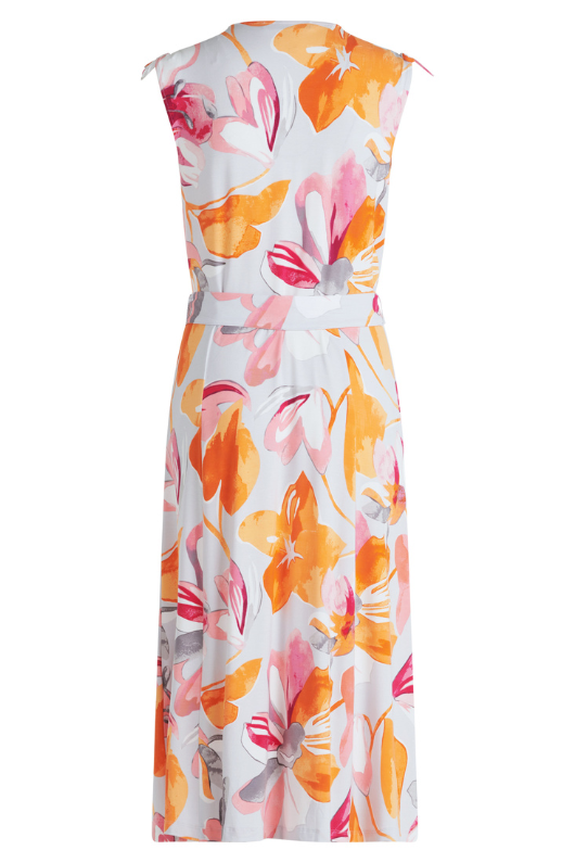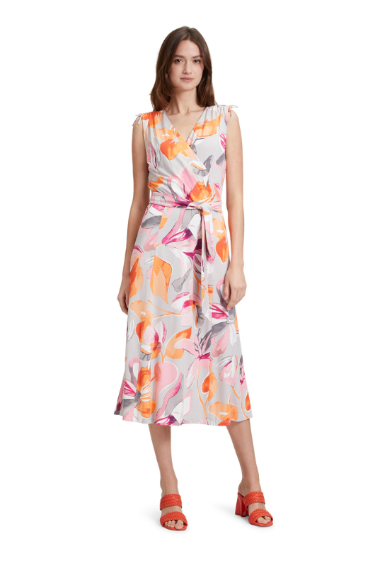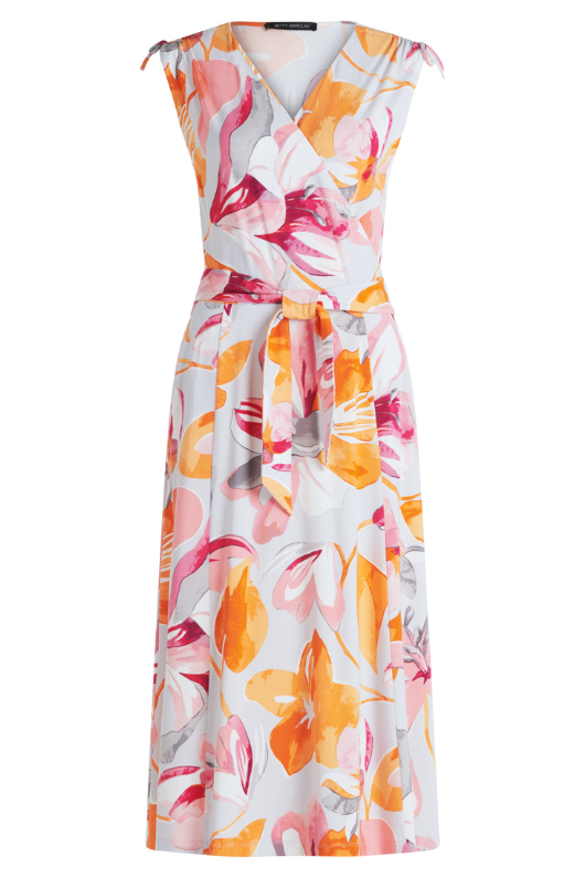 Unleash your inner goddess with the Betty Barclay Sleeveless Midi Dress. The flattering V-neck and wrap effect design highlight your figure, while the belted waist cinches in for a perfect fit. The summery floral print and slit pockets add functionality and style. Elevate your wardrobe with this must-have dress!