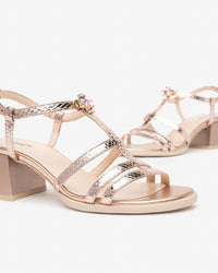 Sleek and stylish, the Nero Giardini Blade Phard Heeled Sandal is expertly crafted in Italy with a rose gold metallic finish and supple leather upper. The block heel provides height and comfort, while the buckle fastening and strappy design add a touch of sophistication. Elevate any outfit with this versatile sandal!