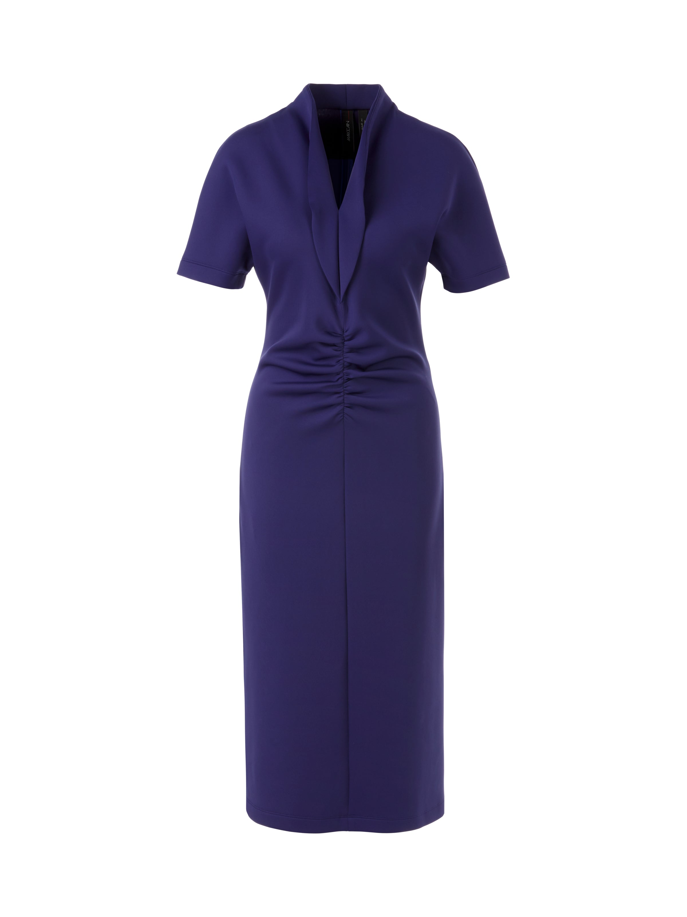 This Marc Cain fitted dress offers a figure-hugging fit and smock detail for a flattering silhouette. The short sleeves and deep V-neck with flounce detail add a flirty touch, while the midi length offers a sophisticated look. Perfect for any formal event or special occasion.
