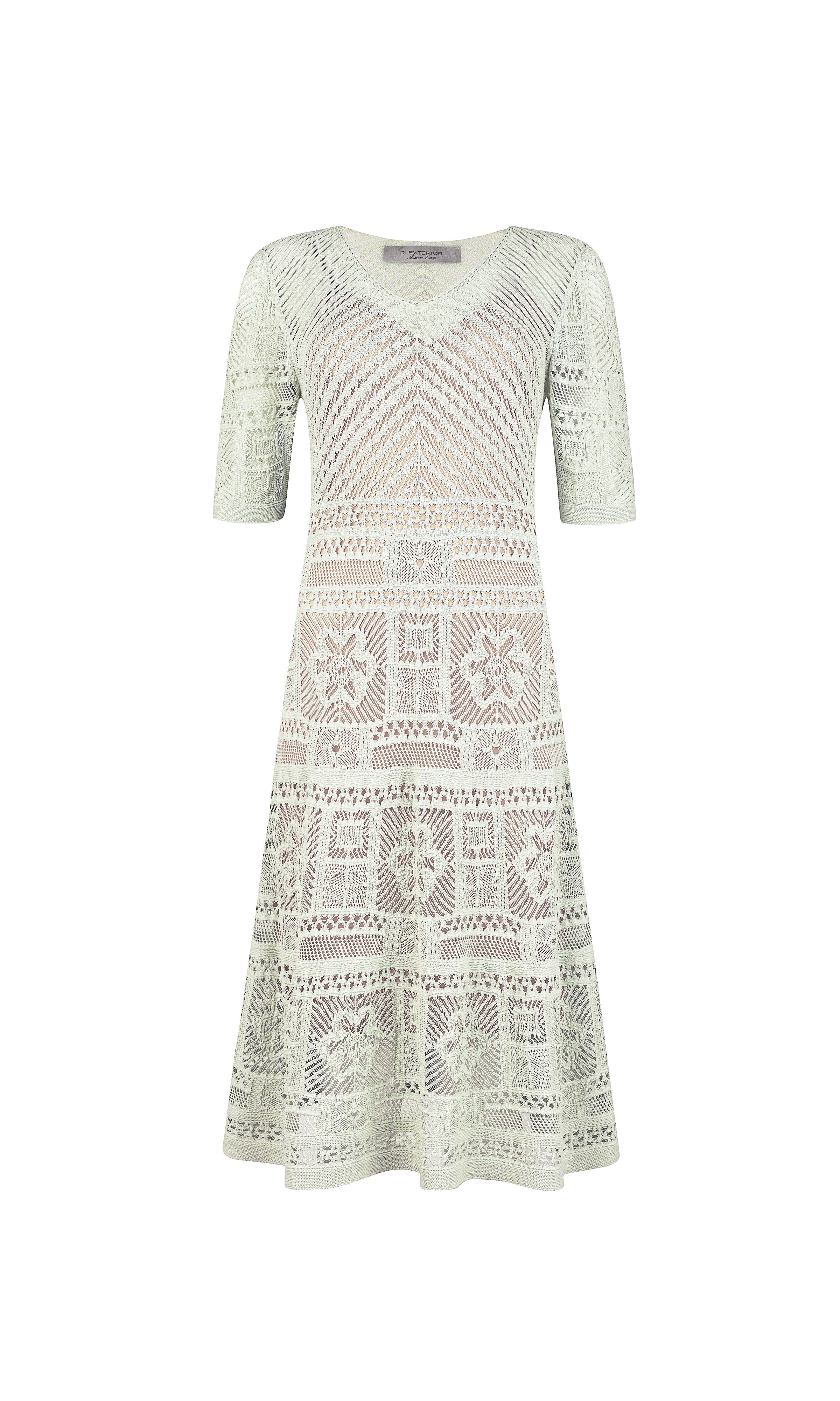 Elevate your wardrobe with this exquisite V-neck D.Exterior Dress. The elegant midi length and delicate lace details make it a timeless piece for any occasion. With short sleeves, this dress is perfect for transitioning from day to night, adding a touch of sophistication to your look.