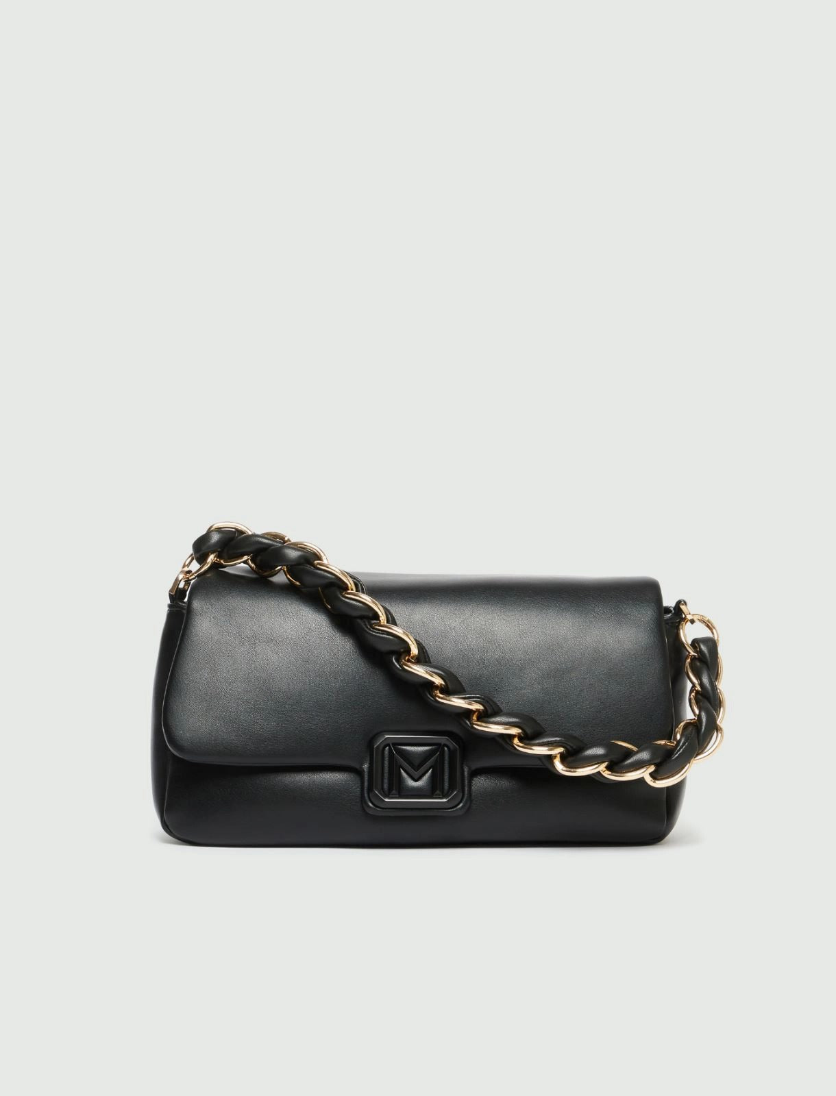 Elevate your style with the Marella Emily Handbag, featuring a luxurious woven metal chain handle and branded lining. The removable shoulder strap allows for versatile wear, while the magnetic snap-fastening flapover design adds a touch of sophistication with its branded plate detail. Perfect for any occasion.