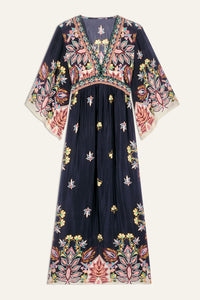 Discover the effortless beauty and comfort of the BA&SH Lufia Maxi Dress. With a flattering V-neck, stunning pattern, and flowing boho look, this dress will elevate your style. The maxi length and wide sleeves provide the perfect balance between comfort and elegance. Embroidered details add an extra touch of charm.
