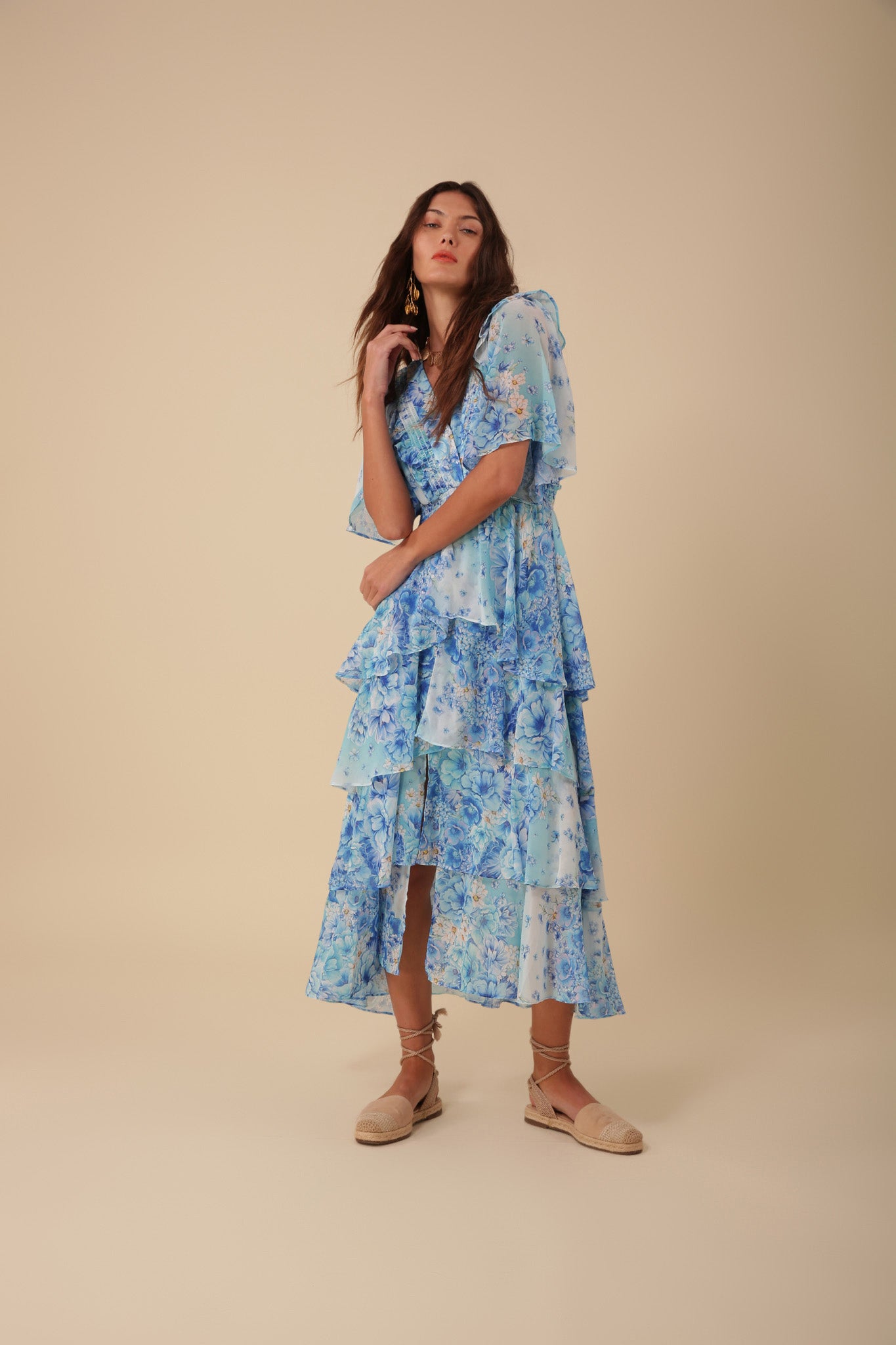 Experience effortless elegance in the Hale Bob Ruffle V-Neck Dress. With its maxi length and leg slit, this dress exudes sophistication. The delicate ruffle detail and V-neck add a touch of femininity, making it the perfect choice for any special occasion. Elevate your wardrobe with this timeless piece.