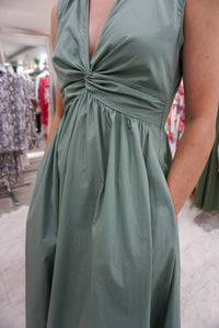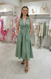 The Emme Selva Dress embodies refined elegance with its thoughtfully designed V-neckline and distinctive crossover collar. Crafted from premium cotton poplin, this midi-length silhouette offers both sophisticated style and breathable comfort.