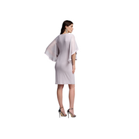 Joseph Ribkoff women's shiffon dress with cross over surplice neck and beautifully draped sleeves for an elegant look. Perfect for occasion wear.