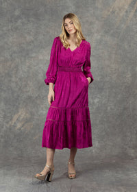 The Tier Dress from Fee-G is perfect for dressing up any occasion. It features a flattering tiered silhouette and a vibrant magenta hue. This standout piece will be a go-to in your wardrobe.