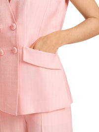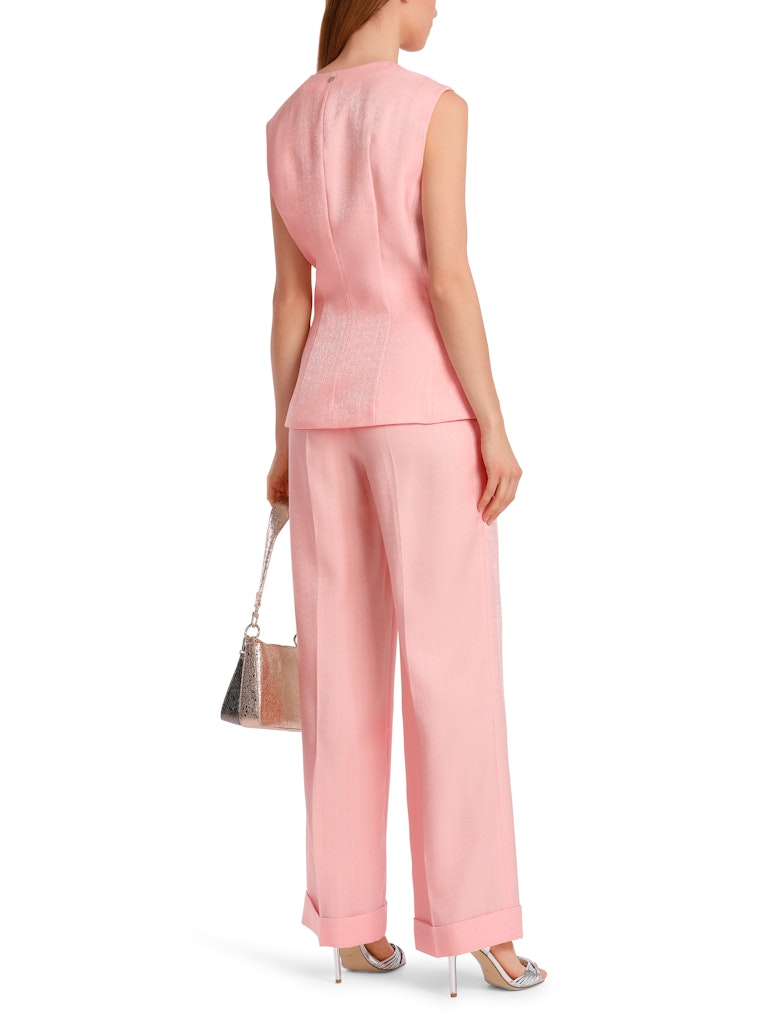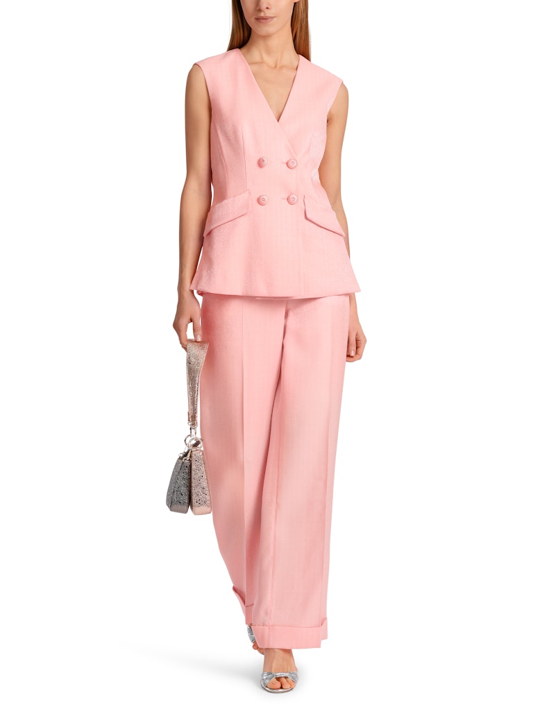 The Marc Cain Waistcoat boasts a tailored fit and a double-breasted style for a timeless look. The carefully crafted trimmed buttons add a touch of sophistication while the pockets provide convenience. A must-have for any wardrobe, perfect for any special occasion.