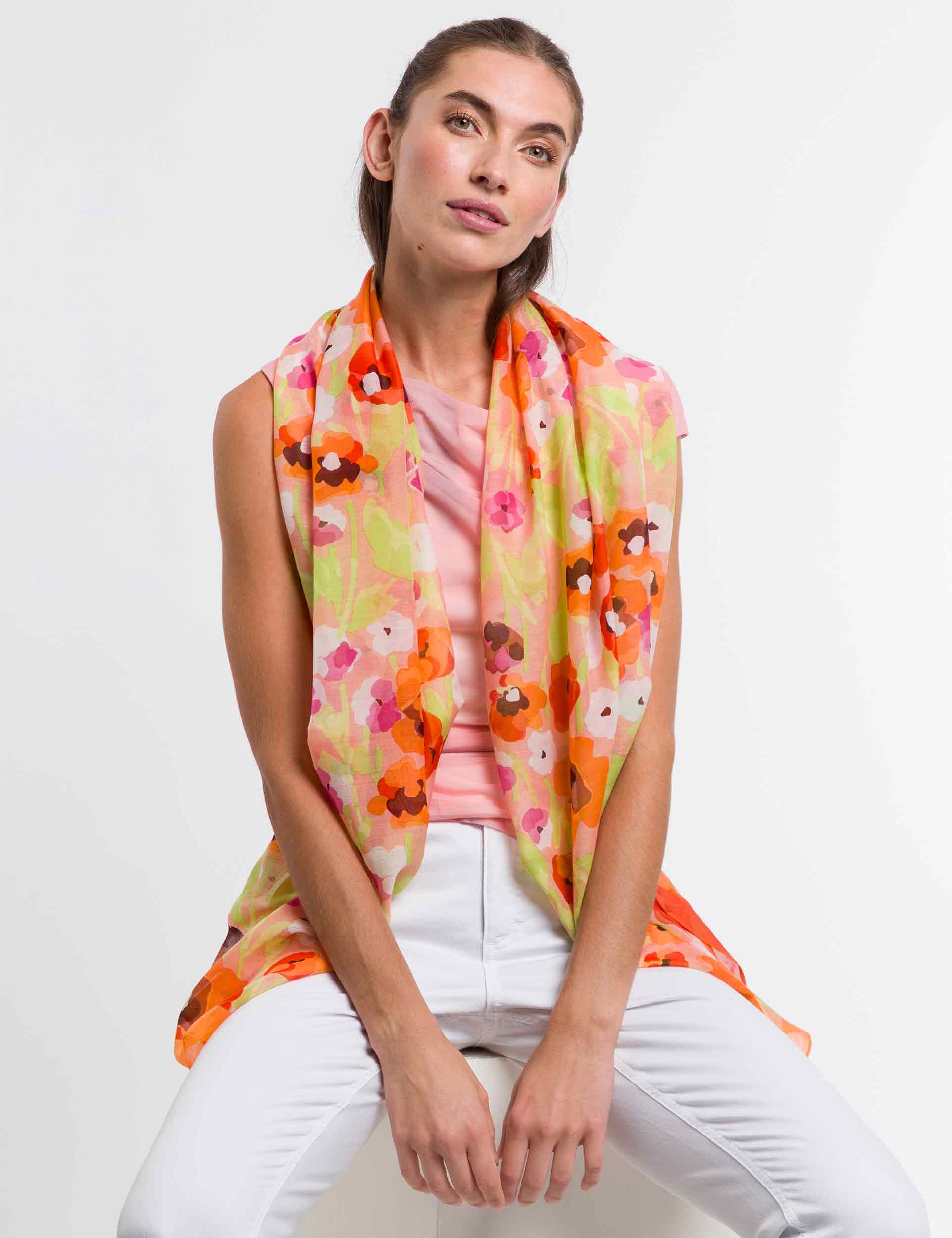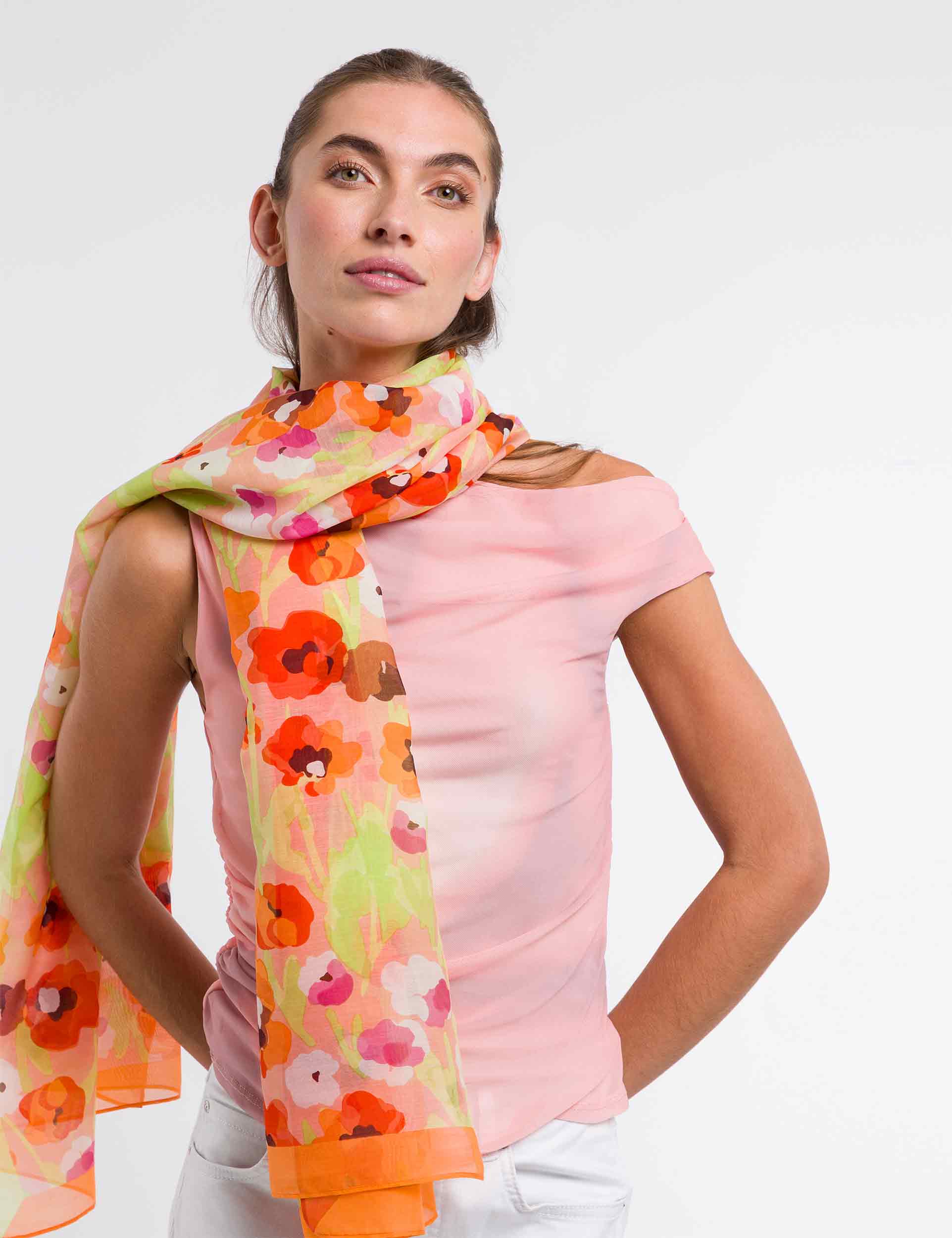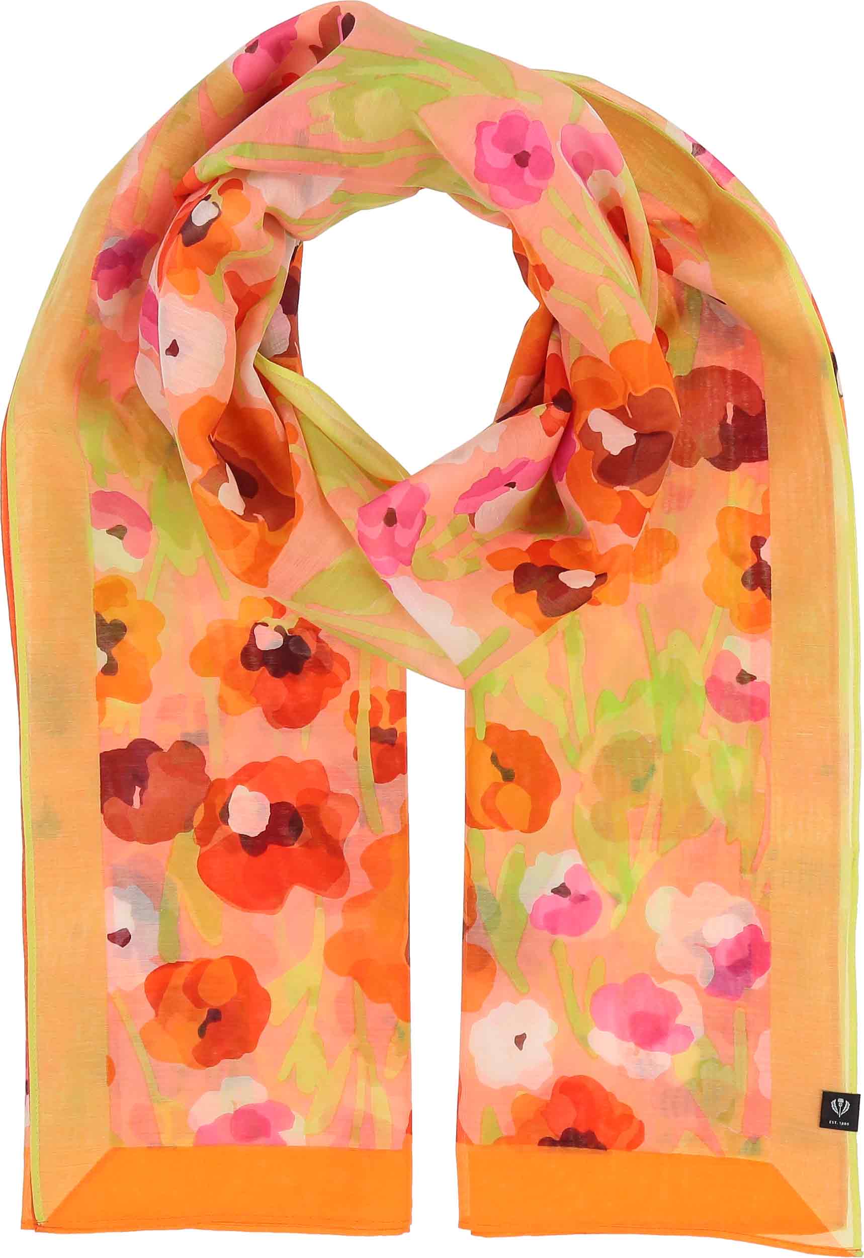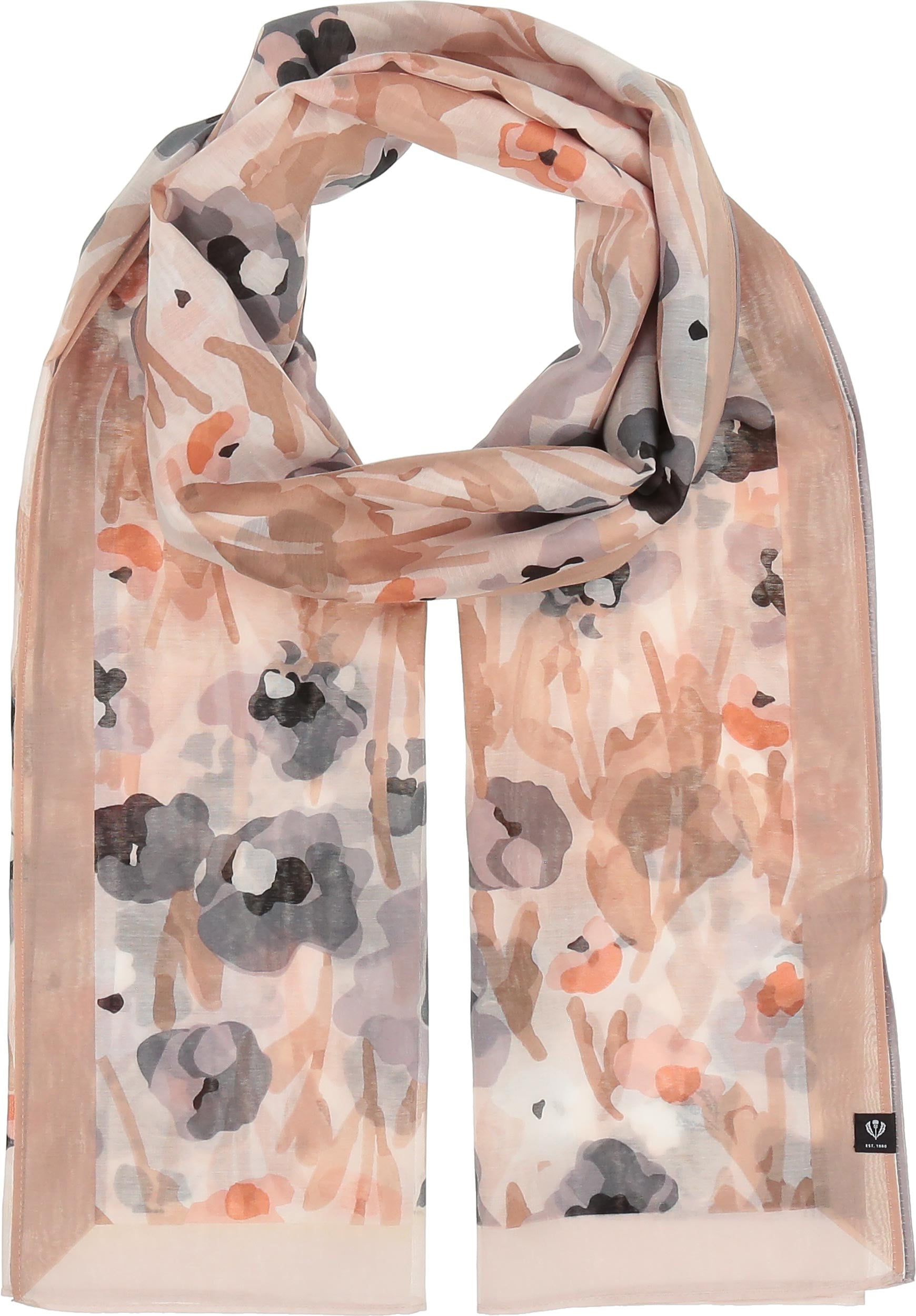 Indulge in the ultimate summer accessory with the Fraas Floral Cotton Silk Scarf. Made from a luxurious cotton-silk blend, its light material and soft colours are perfect for any occasion. Wear it in various styles.