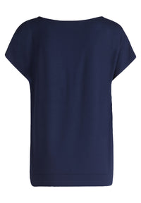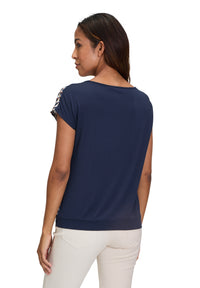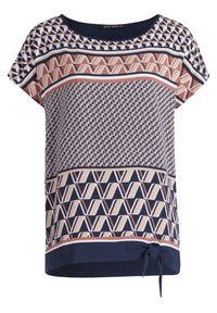 Elevate your style with the Betty Barclay Abstract T-Shirt! The casual fit and dropped sleeves offer both comfort and fashion, while the bateau neckline adds a touch of elegance. The abstract print and unique tie detail make this tee stand out from the rest. The back of this top features a simple, plain look.