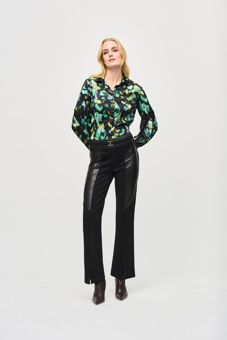 Indulge in luxury with the Joseph Ribkoff Collared Blouse. Adorned with a shirt collar, long puff sleeves, and delicate lace embellishment, this blouse offers both elegance and sophistication. Elevate your wardrobe with this opulent piece, perfect for any occasion.