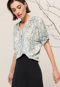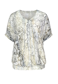Introducing the Bianca Sia Blouse, a perfect blend of comfort and style. The relaxed fit and short sleeves provide ease of movement, while the round neck adds a touch of elegance. With an on-trend animal print and drapey fabric, this blouse is the ultimate addition to your wardrobe.