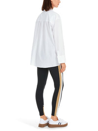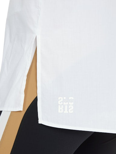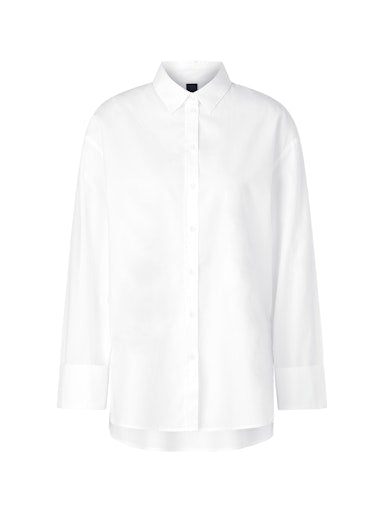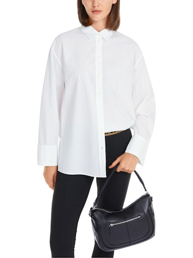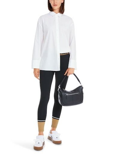 This organic cotton Marc Cain Blouse features a flared shape with side slits and an eye-catching fancy cuff. The Kent collar and full-length button placket add a touch of sophistication. With a relaxed fit, this blouse is an essential staple and proudly carries the "Rethink Together" sustainability label.