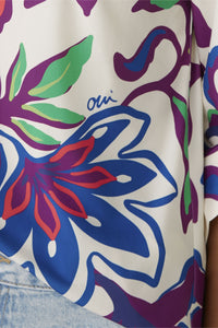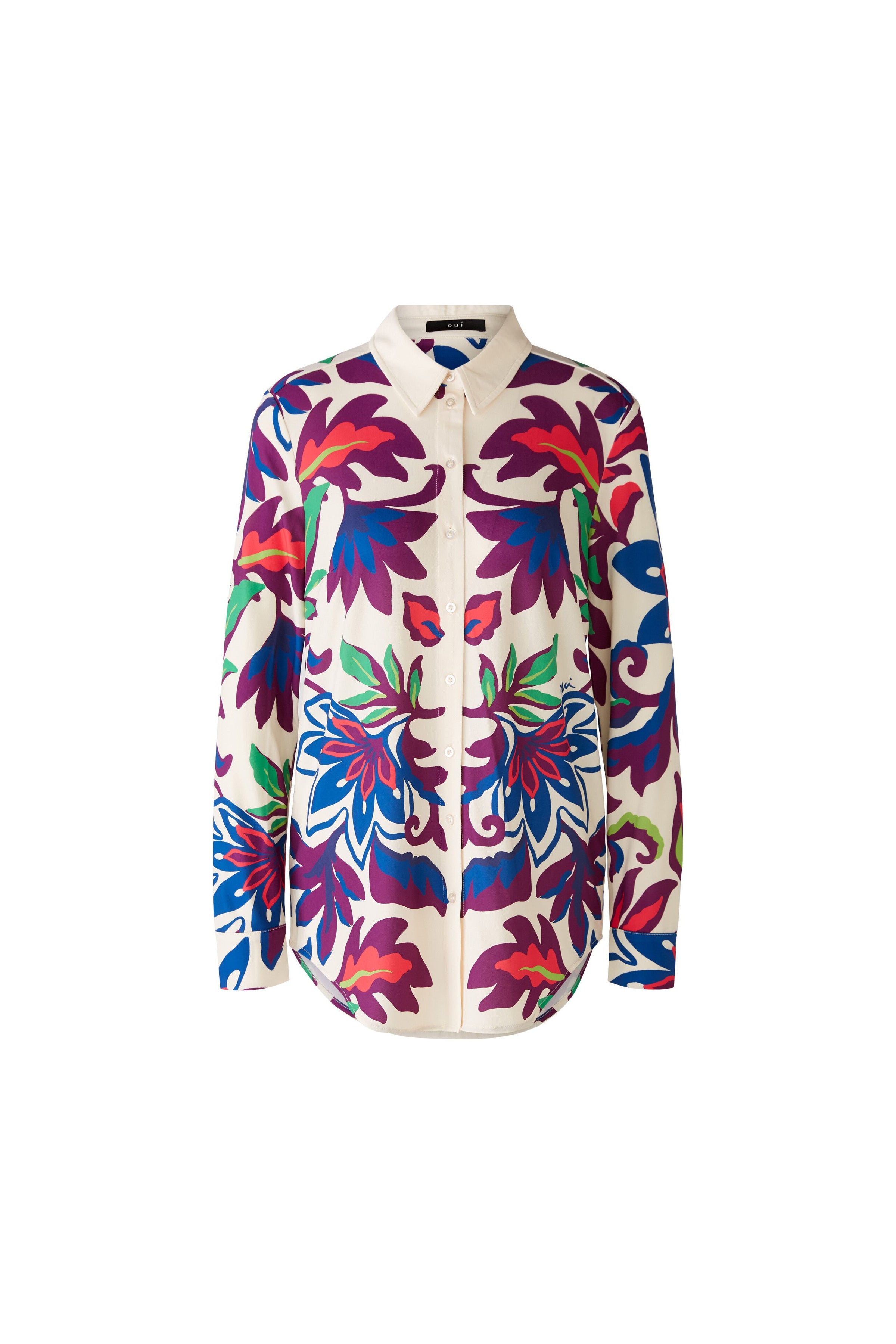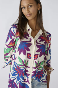 Crafted with an expert touch and made from a silk-like material, the Oui Bold Floral Blouse is a stylish and functional choice for any occasion. With its extended length and full sleeves, it provides ample coverage while the sophisticated collar adds a touch of elegance to the overall look. Featuring a casual cut and bold floral print, this blouse is sure to make a statement.