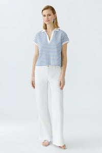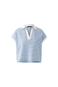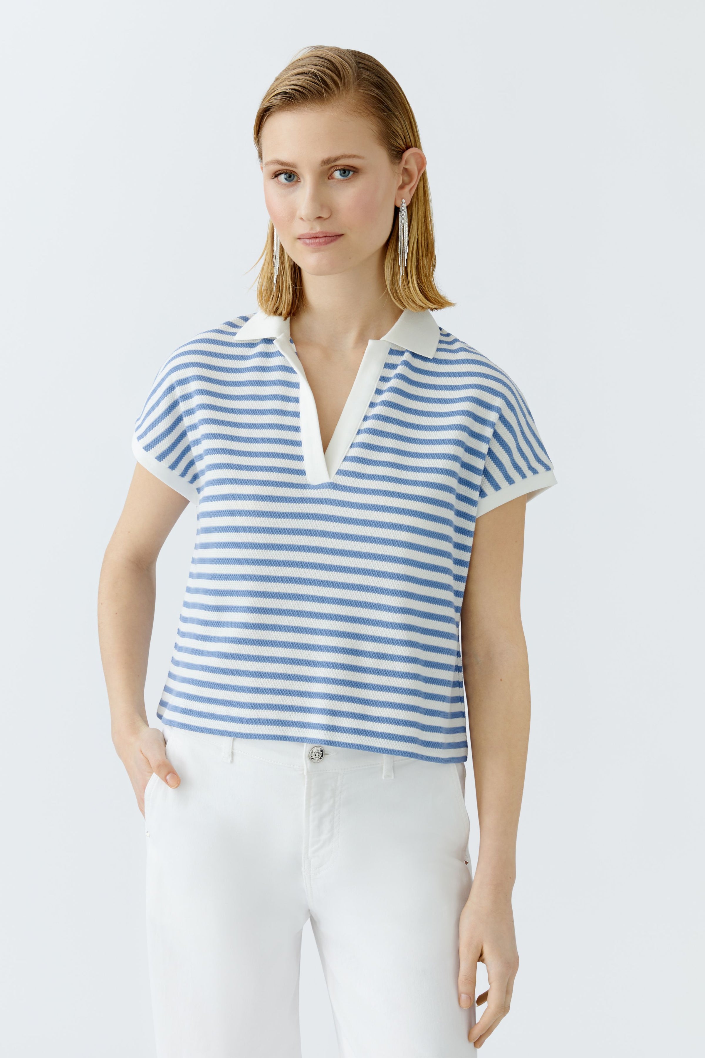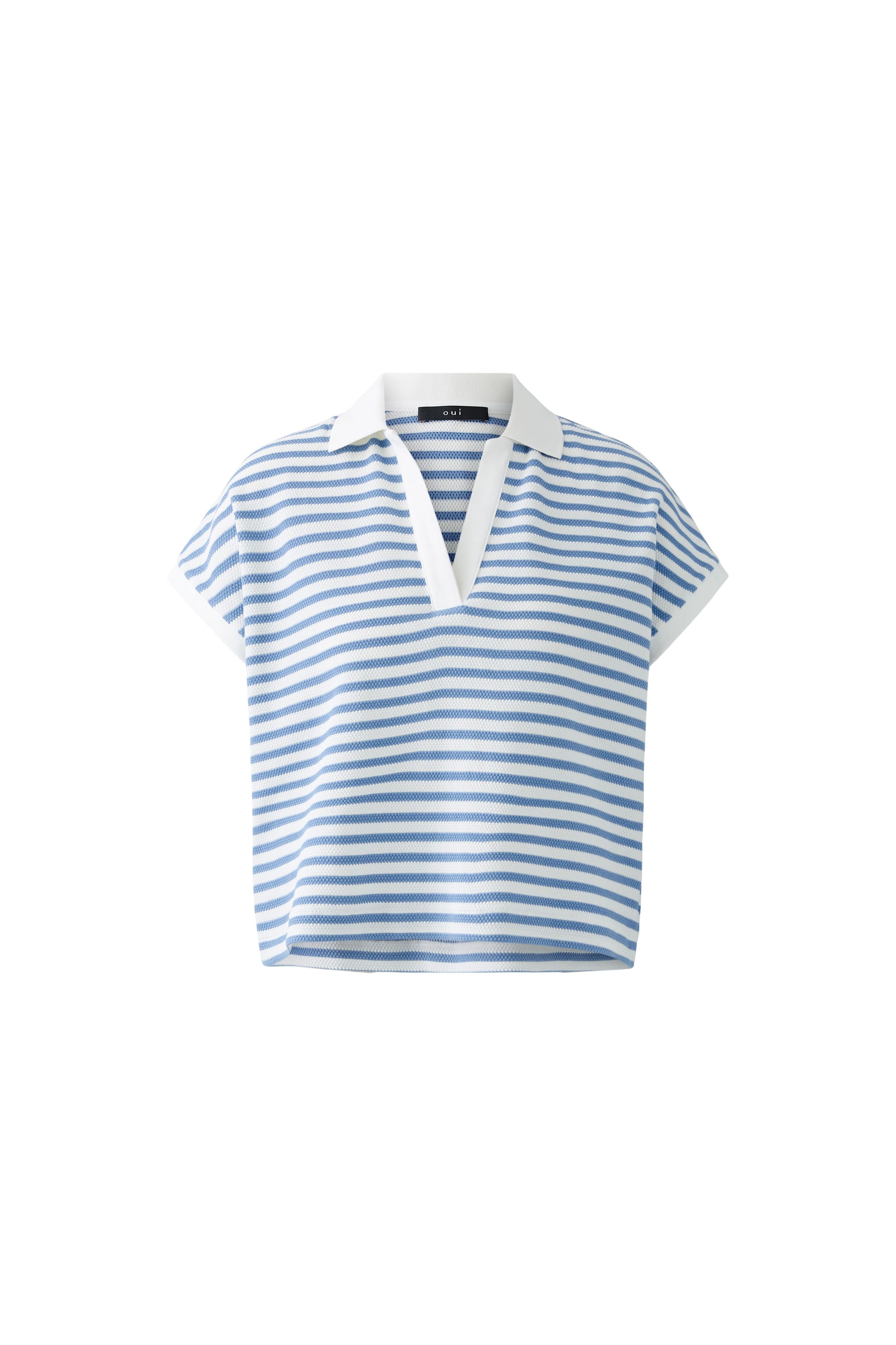 Indulge in effortless style with the Oui Polo Shirt. Made with elastic cotton jersey, this oversized cut shirt boasts a shortened length for a trendy look. The tunic neckline and dropped shoulder add a touch of sophistication, while the contrast panels in white add a pop of elegance.