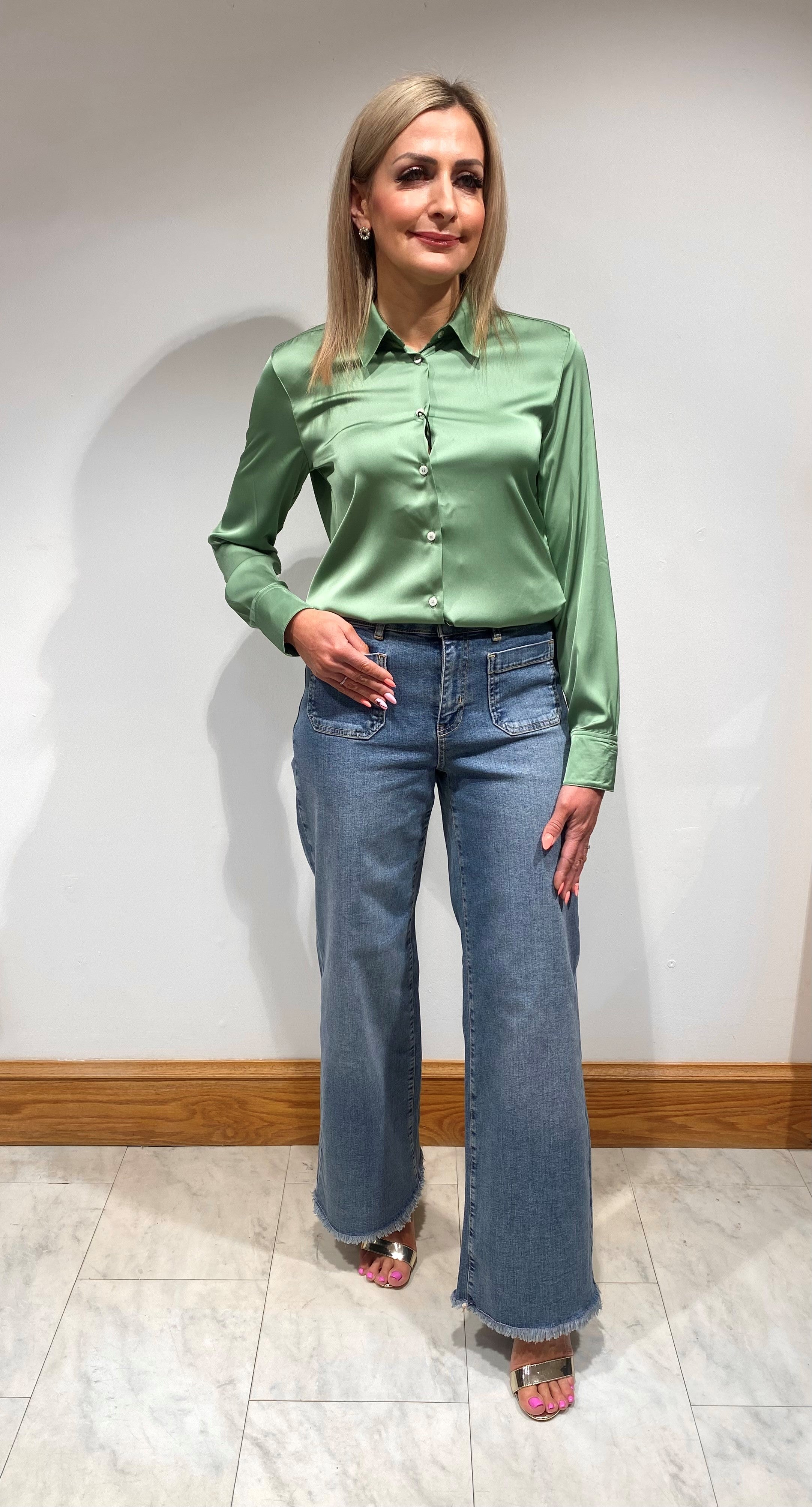 The Emme Morsa Shirt boasts a semi-fitted design with classic shirt collar and long sleeves. Made with stretch satin, it offers comfort and a polished look. The visible button fastening adds a touch of sophistication. Perfect for the modern professional's wardrobe.