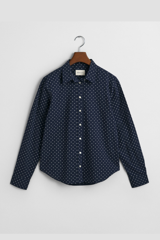 The feminine Gant Dot Print Cotton Voile Shirt features a charming print and is crafted from soft material for ultimate comfort. The regular fit, point collar, and curved hem add a touch of sophistication, whilst the adjustable cuffs and a box pleat at the back provide versatility and style. Look effortlessly chic with the long sleeves and button fastening!