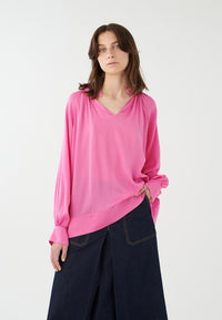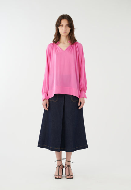 This silk blouse, designed by Dea Kudibal, offers elegant and sophisticated style for any occasion. Made from luxurious silk fabric, it provides a comfortable and effortless fit, while its timeless design adds a touch of class to any outfit. Elevate your wardrobe with this exceptional piece.