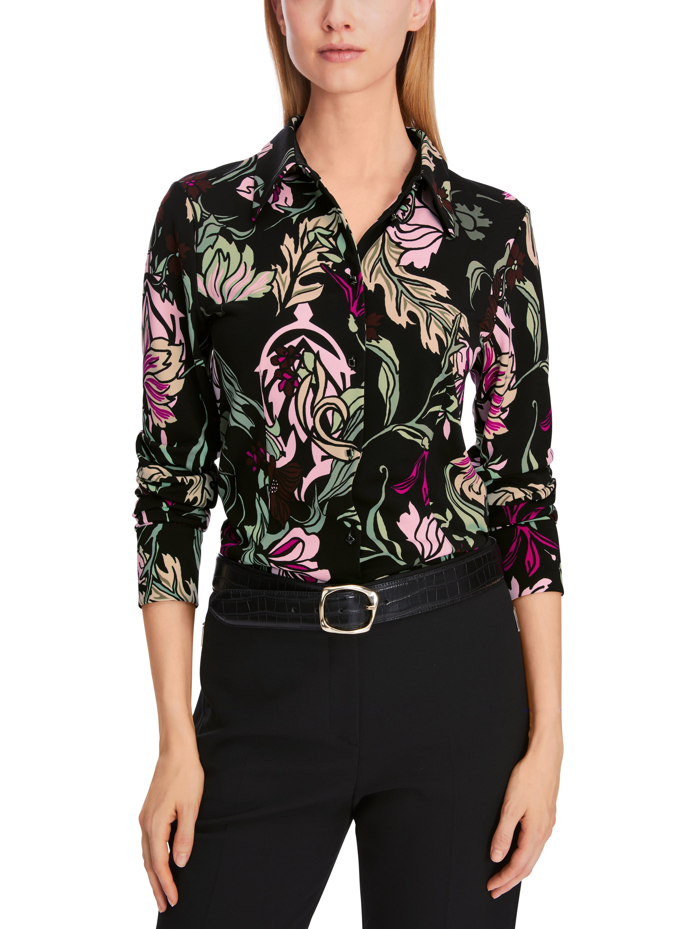 Indulge in luxury with the Marc Cain Floral Blouse. With its slim fit, long sleeves, and elegant collar, this blouse is perfect for any occasion, be it formal or casual. Complete the look with its classy button fastening and eye-catching floral print. Upgrade your wardrobe with this exquisite blouse.