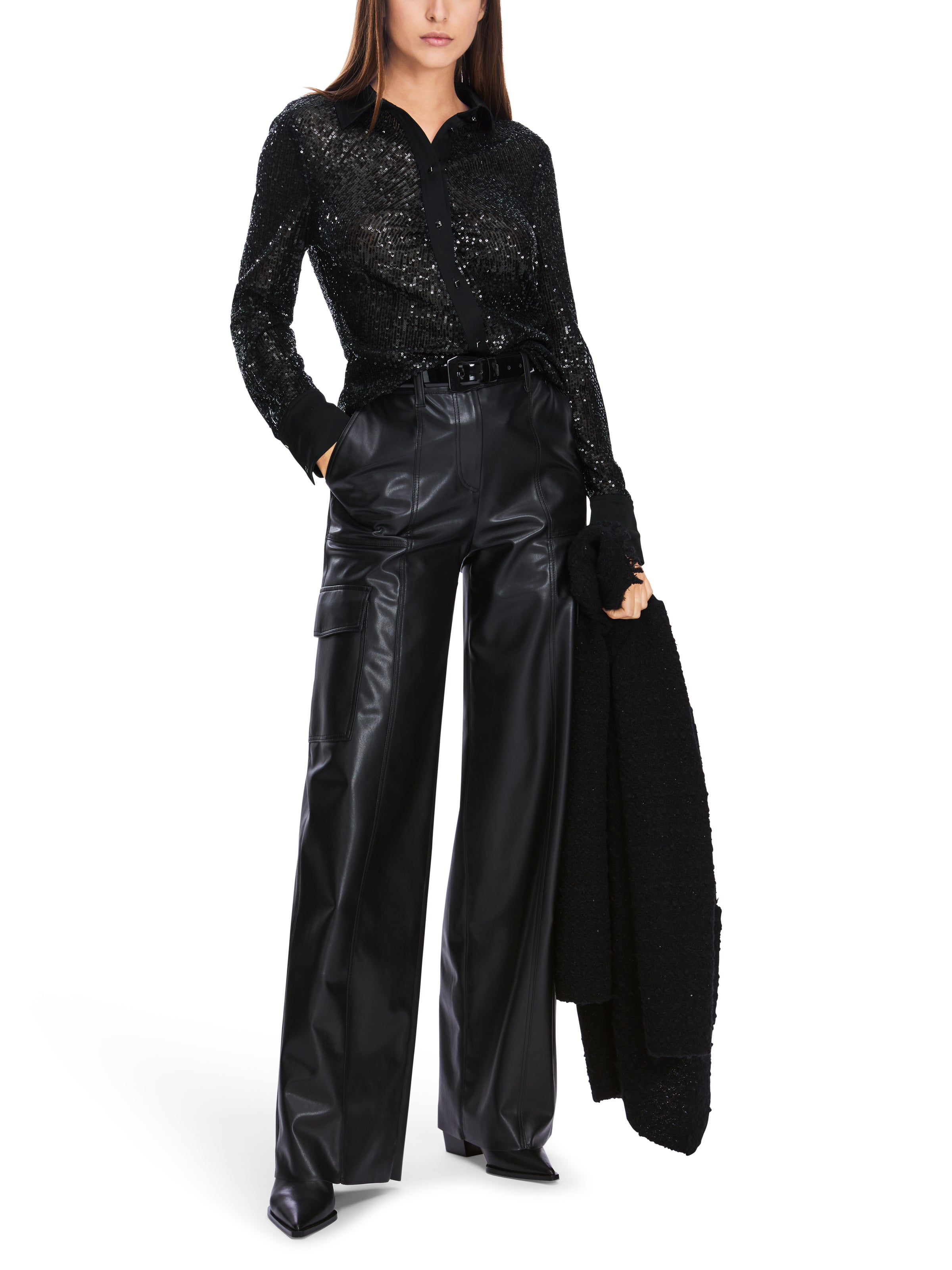 Indulge in the luxurious allure of the Marc Cain Sequin Blouse. Its slim fit, collar, and button fastening exude sophistication, while the long sleeves provide comfort and coverage. The semi-sheer fabric and mini-sequins add a touch of glamour to any ensemble. Elevate your style with this exclusive piece.