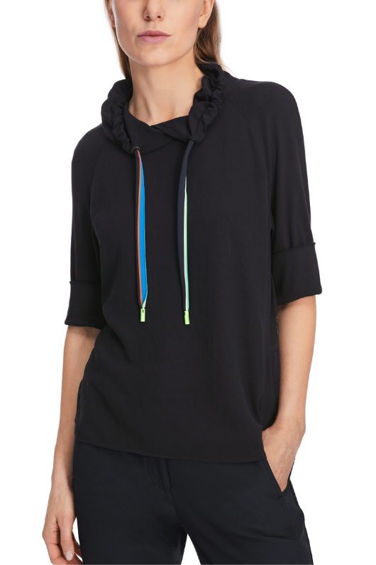Get ready to be sporty in style with the Marc Cain Sports Blouse! Designed with 3/4 length sleeves and a round neck, this blouse offers maximum comfort while you move. The colourful drawstrings add a pop of fun to the loose fit, making it perfect for any sports or leisure activity.