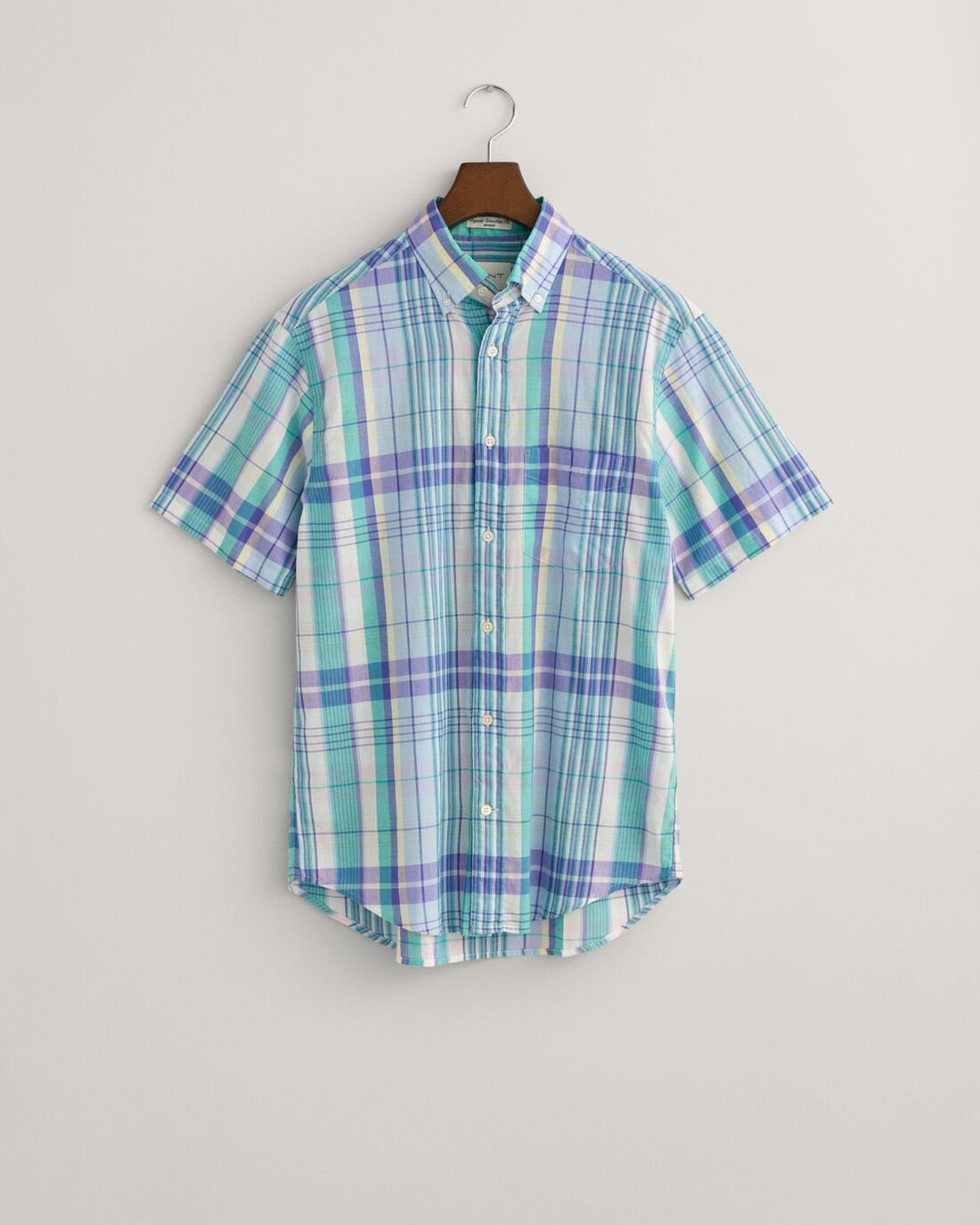 Unleash your colourful style with the Gant Regular Fit Madras Shirt. Feel confident and comfortable all day with its untucked fit and button-down collar. Perfect for any occasion, the Gant logo adds a touch of sophistication. Upgrade your wardrobe now with this stylish shirt.