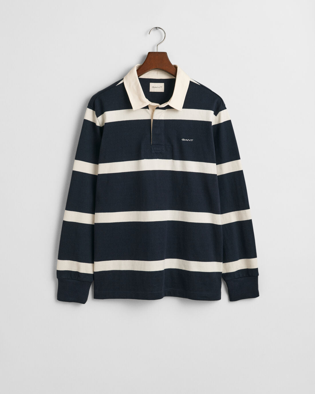 Transform your wardrobe with the Gant Yarn Dyed Striped Heavy Rugger. Made from cotton, this timeless and versatile rugger boasts a classic twill collar, hidden button placket, and side slits. The iconic design features ribbed sleeve cuffs and a Gant shield graphic embroidery for a touch of sophistication.