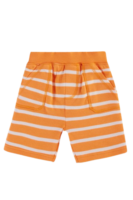 Upgrade your child's wardrobe with the Frugi Little Ellis Shorts! Made from a super soft and durable organic cotton blend, these shorts are perfect for all day comfort. Featuring a bright orange stripe design and a comfy elasticated waistband, with two front pockets for added convenience. Give your child the best in style and comfort!
