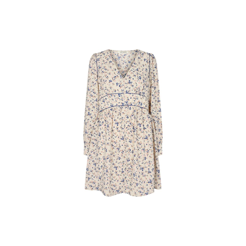 Sofie Schnoor women's dress with cute floral pattern all over, V neck, decorative buttons and stretchy waist for a flattering silhouette.
