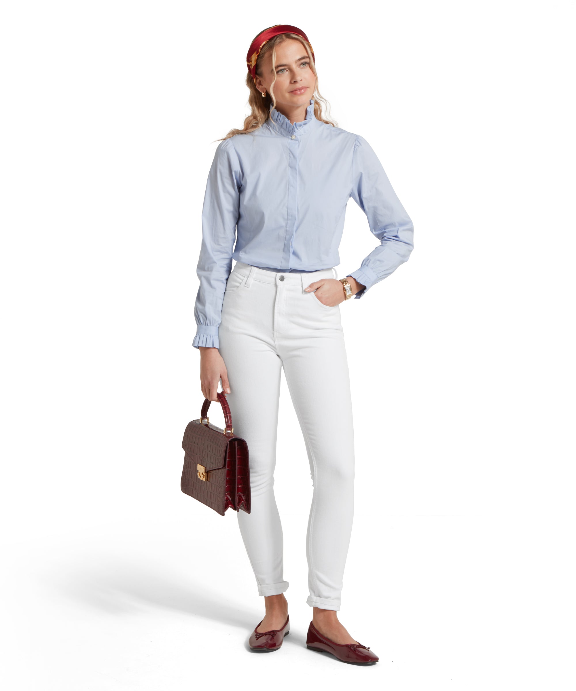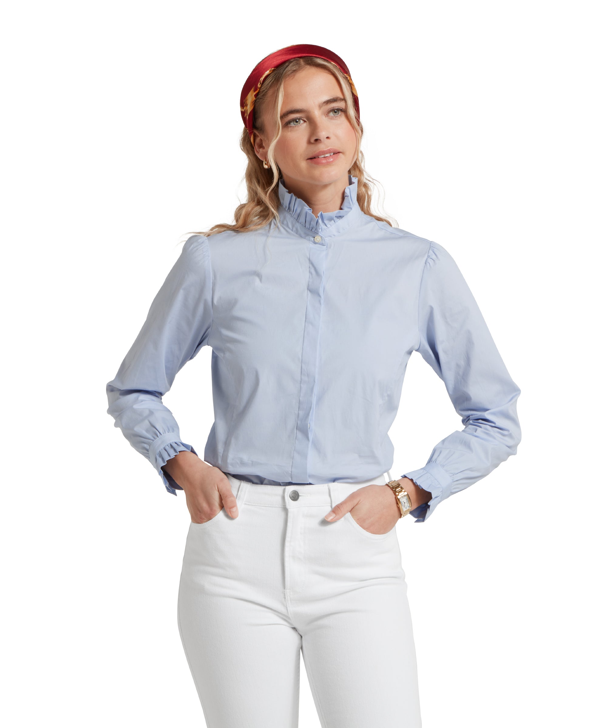The Schoffel Fakenham Shirt features a slim fit and soft cotton poplin material, providing both comfort and style. Its unique pie crust cuffs and collar add a touch of sophistication, while the concealed button fastening offers a sleek and polished look. Perfect for any occasion, this Women's shirt is the epitome of modern elegance.