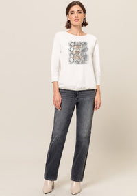 Expertly designed for maximum comfort and style, the Bianca Ele T-Shirt features 3/4 length sleeves and a round neck for a perfect fit. Show off your wild side with the animal print graphic, while the regular fit flatters your figure. Perfect for adding a touch of personality to your wardrobe.