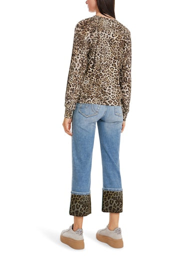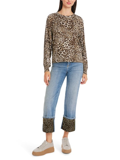 The Marc Cain Leopard Blouse combines a stylish leopard print with pleated sleeves, making it a versatile and on-trend addition to your wardrobe. Made with stretch cotton rib, the slim-cut top features a leopard print which adds a playful touch to this casual yet elegant blouse.